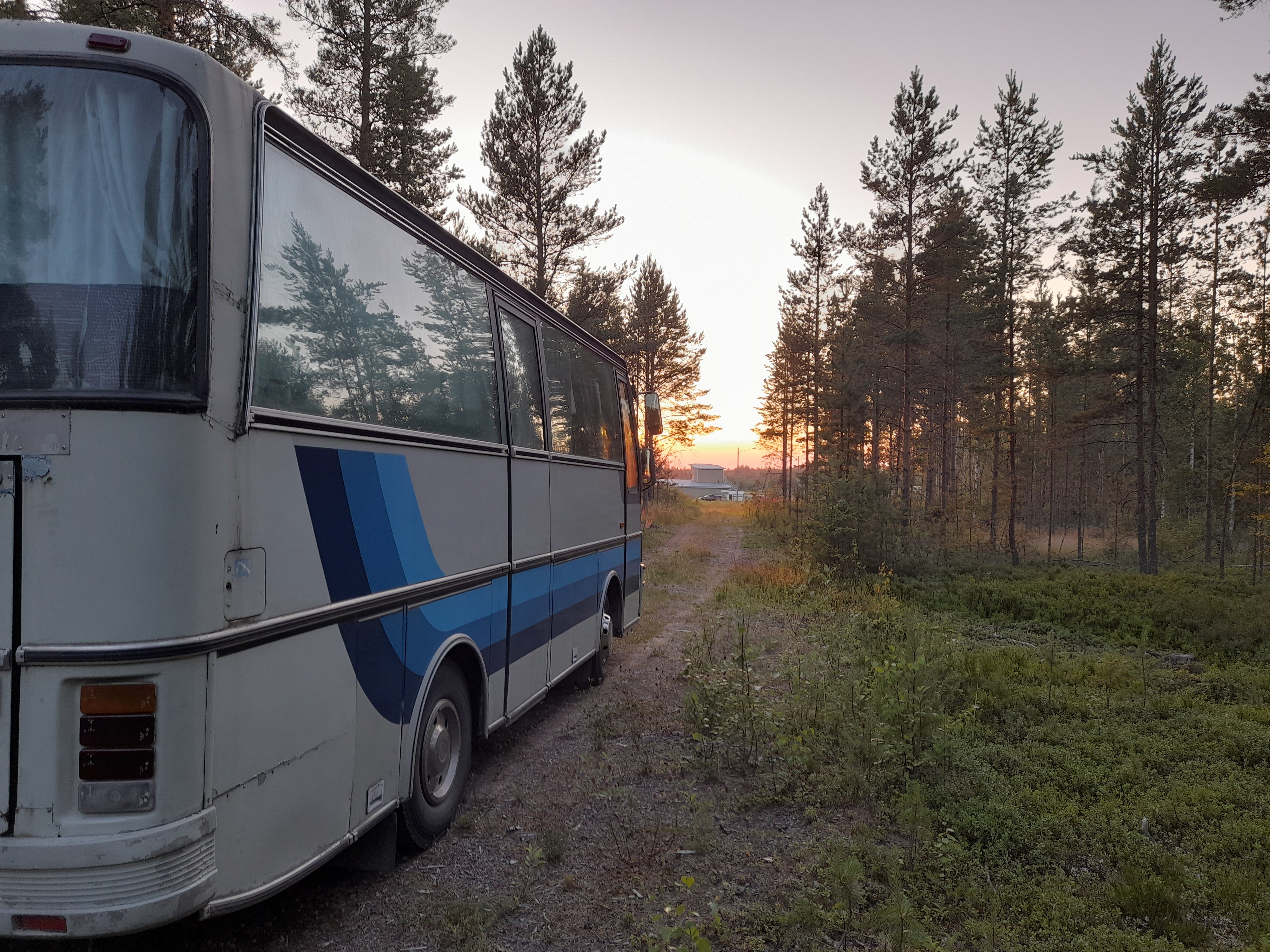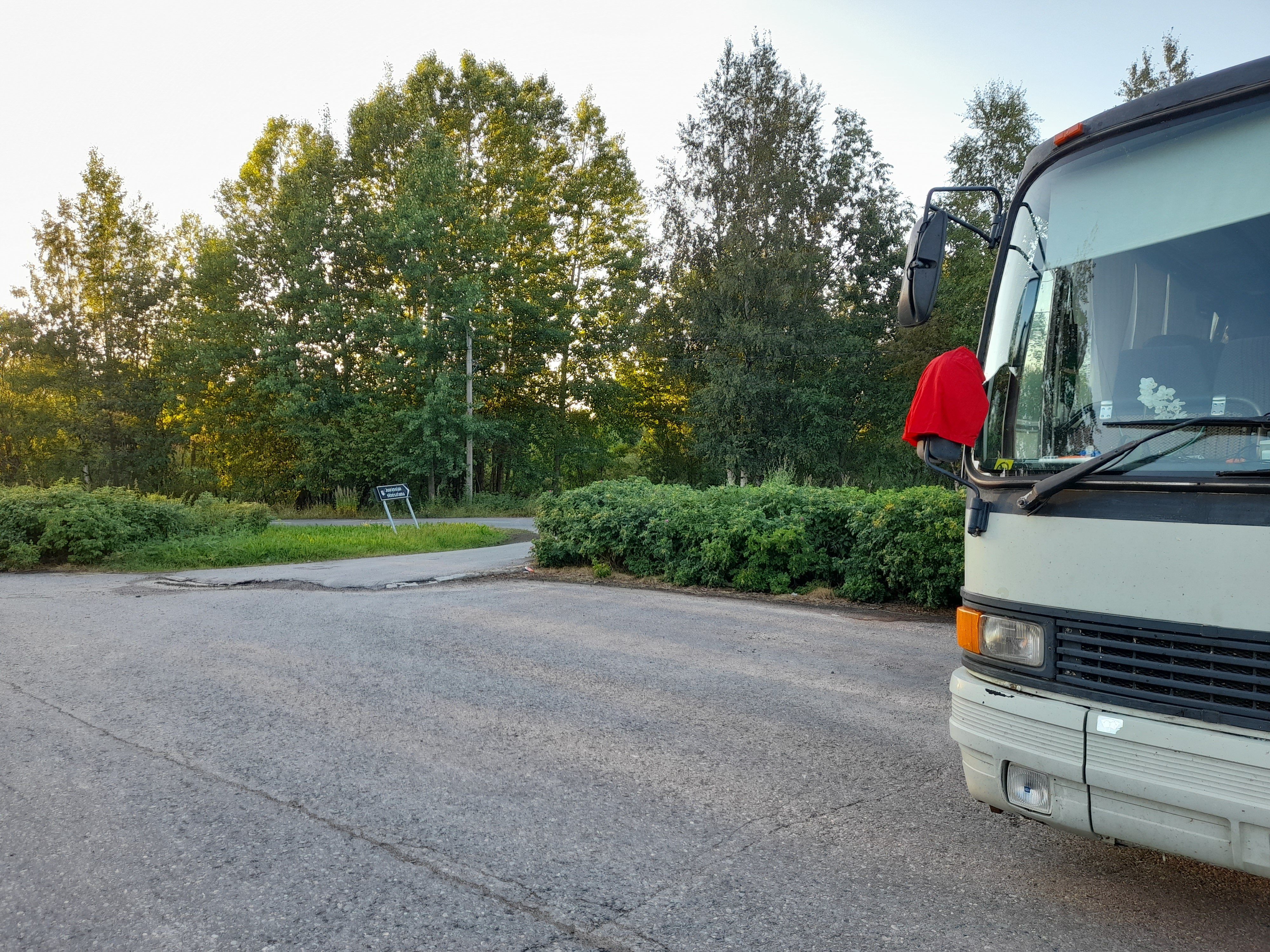 Hetken matkaa ajettua löysimme Tyyrinmäeltä puutavaran purkupaikan. Yövyimme siinä. Hieman mietitytti tuleeko aamusta häätö. Mutta emme olleet tiellä. Peruutimme Hieman taaemmaksi umpitien päähän.
