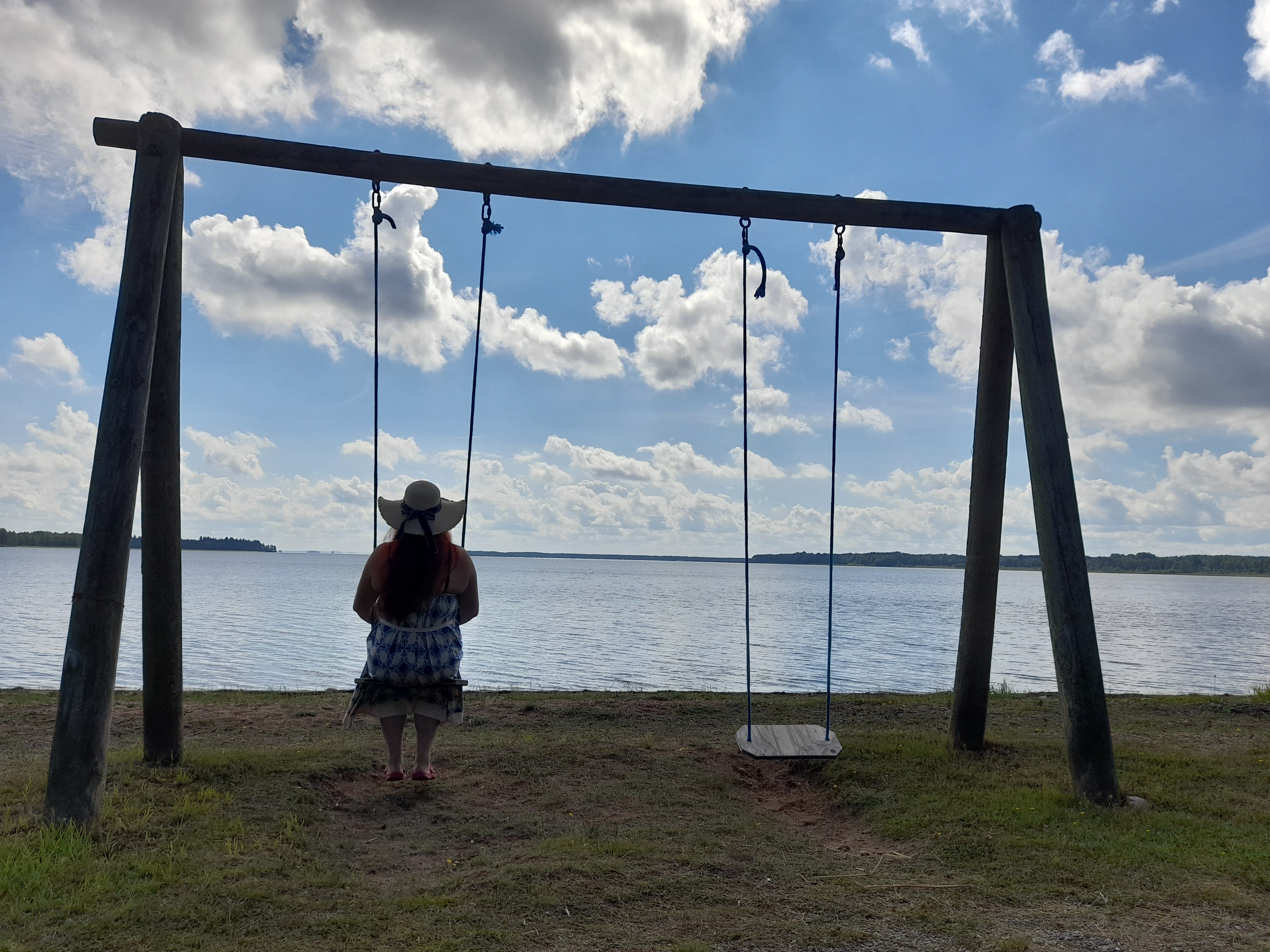 Pysähdyimme Saarijärven levähdyspaikalle uimaan. Tosi matala. Sai kahlata kauas että pääsi uimaan.
