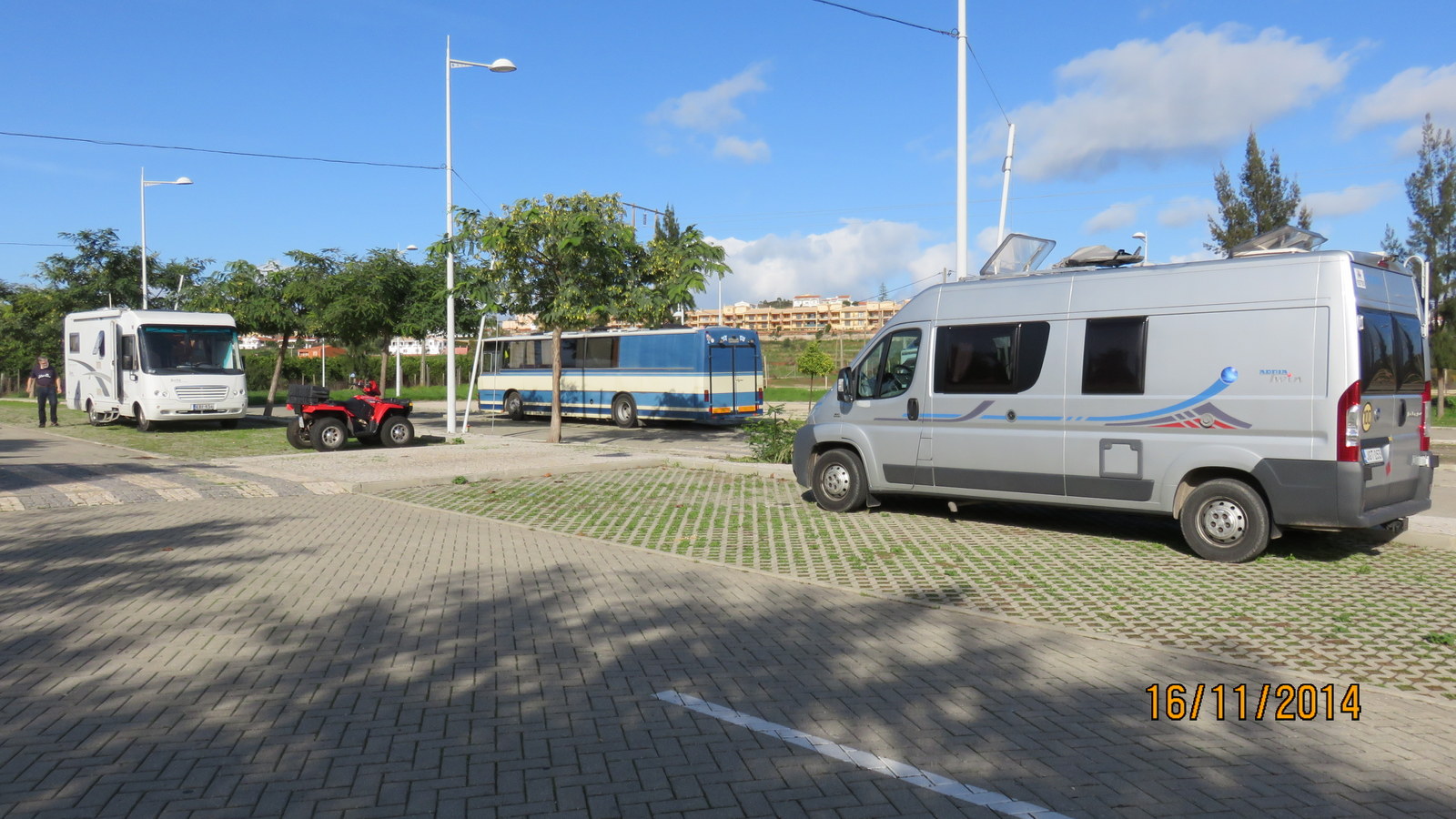 Saavuimme talvehtimisalueelle 19.10 olimme ensiksi kolme päivää Olhãon kämppärillä jonne jätimme saattomiehemme. Hän seurasi perässämme aina Vuosaaren satamasta alkaen. Pari yötä Silves 80 km länteen linnoituskaupunki 700 luvulta (itse linnoitus). Nyt olemme Portimaossa jossa tutkailemme nykyisen 2,50€ parkin historian loppumista huomenna. Paikka siirtyy uudelle omistajalle maanantaina jolloin alueen pitää olla tyhjä. Mitä sitten uusi omistaja tekee maanantaina sitä ei vielä tiedä kukaan.