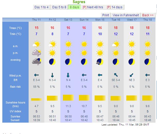 Kesä täällä on Suomalaisittain eli aamulla auringon nousun aikaan +12 korkein tänään luvattu +16 . Aamulla tuli runsaasti vettä ja aurinkoakin pitäis tulla 6 tuntia. Piti kääntää kuva kantilleen kun herjasi että on lian leviä. Eurooppa kartta on tämän kuun viimeiselle päivälle. Pääsiäinen on ennustettu kylmäksi koko euroopassa.