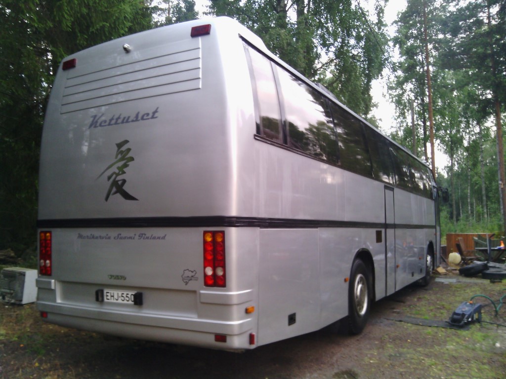 Mittarissa alta puolitoista miljoonaa Taivassalon mukaan, tilurina kun on ollu jollekki potkupalloseuralle ja Firmoille, Kemira ym. mitä nyt taulussa lukee, hieno bussi.