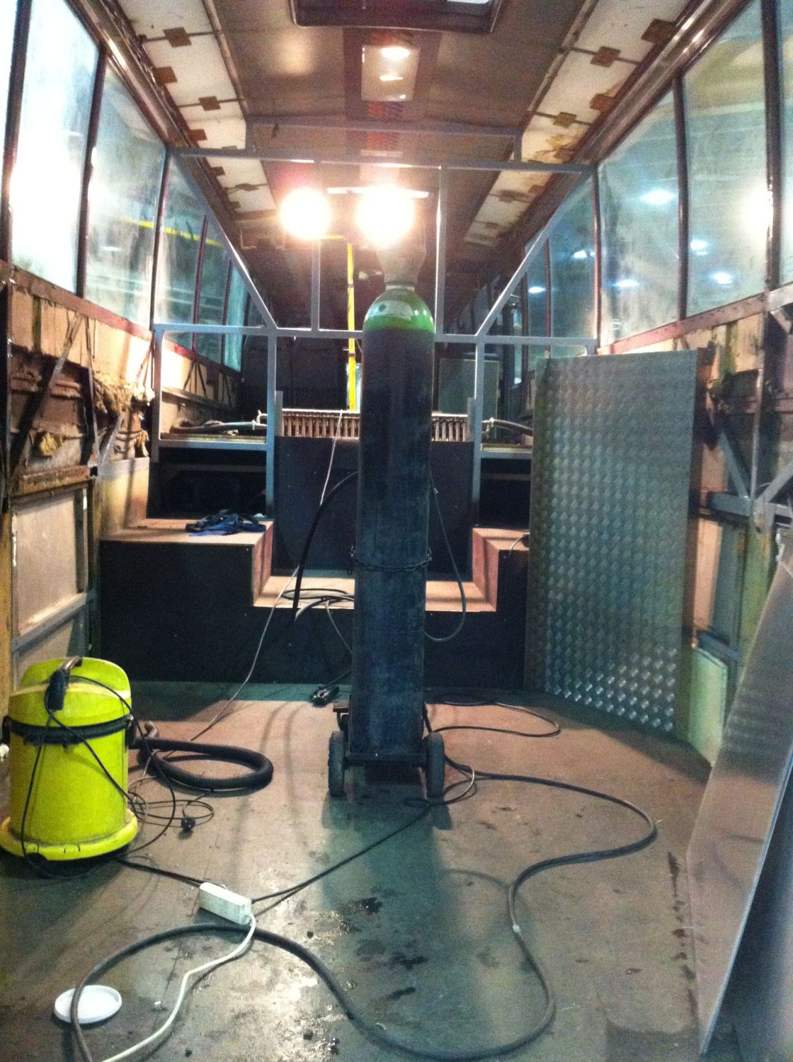 Vielä lattiasta irti penkkien kiinnityskisko ja lattiat auki. Sitten alakas jo uuden teko pikku hiljaa