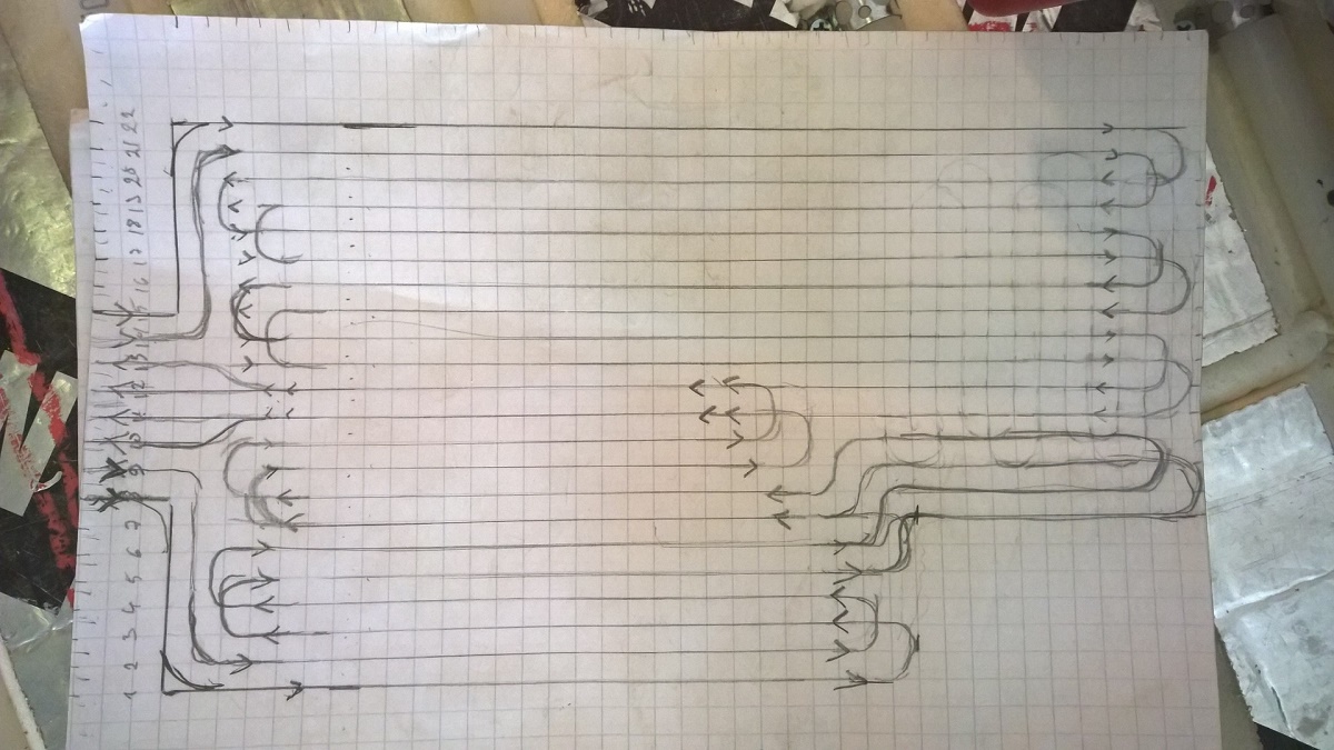 Jees, laiskuus on ehken päällimmäinen syy tähän "pituus suuntaiseen" asennukseen... en siis hirmukauan jaksanu pohtia et miten ne sais sinne "sekaisin poikittain" ja ku toi pintamateriaali on "kiveä" (no on kaukana kivestä toi kuivapuriste laatta...) on se ny kuitenkin lähempänä kivee ku puuta tai muovia...ja ku se tulee vielä sementtipohjasella laastilla kiinni. Ni kuvittelin että "lämmettyään" se vois olla suht tasalämpöinen...vaikkakaan ei tuosta rakenteesta niin paksu tule että se sinänsä hirveesti sitä sitois... :) Ja mitä tuohon putkensuoran pituuteen tulee... taitaa olla karvan alta 4m noi pisimmät suorat "kuumatvedot"... ja paluu puolelle tulis sitte parimetriä pidempi suora... :) siis tuolla "pitkinpoikin" tyylillä...