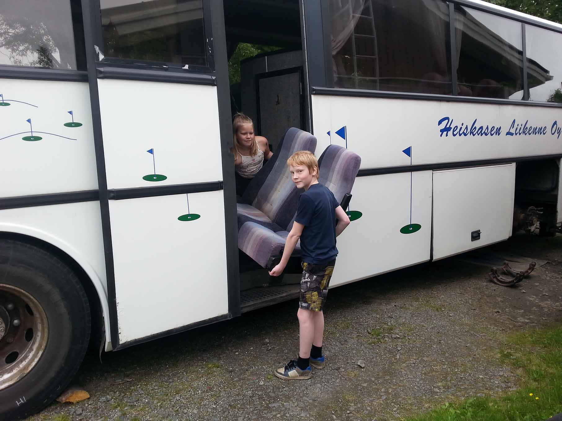Mahdollisimman äkkiä nyt on pakkomielle saada leimaan niin pääsee ajelemaan. Bussi on hyötylaite, se tykkää siitä, että sillä ajetaan