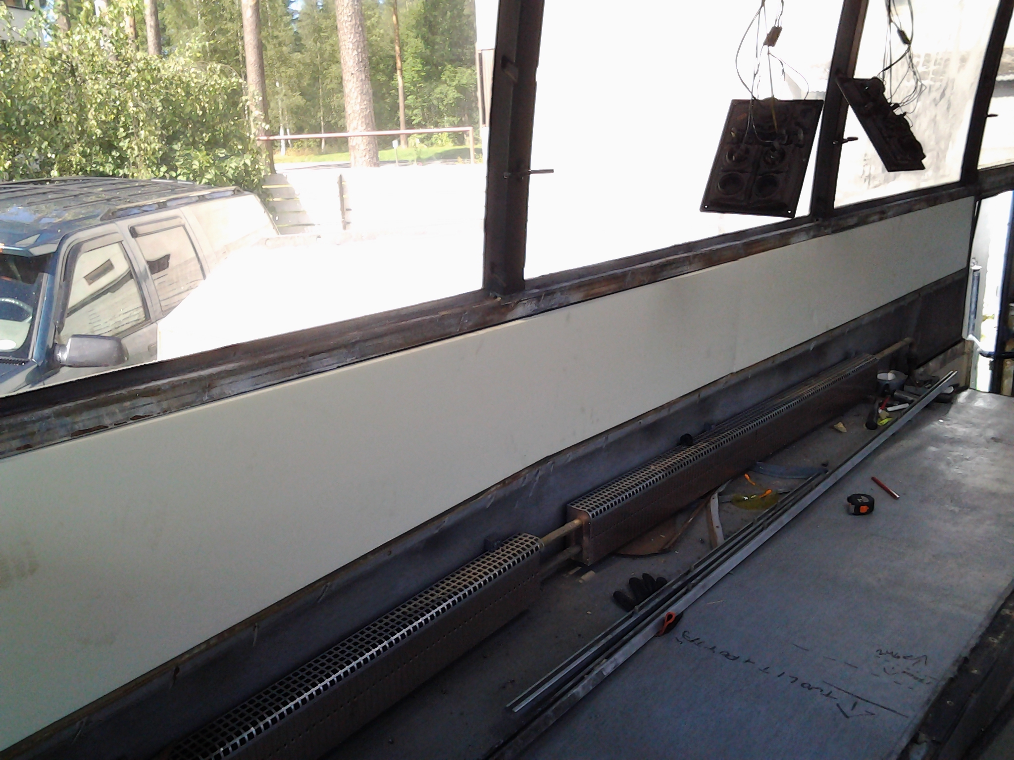 Hyvä aihio lähtee rakentamaan (toivottavasti...), täytyy laitella kuvia matkan varrella tekeleestä. Nyt on tässä vaiheessa korjailtu polttoaine tankkien väliputket ja yksi tankin alakannake jonka oli ruosteenkukka perkule syöny... Oli muuten hyvä laittaa nuo nyt kuntoon kun edellinen oli purkanu kosteuden takia lattiat tankkien kohdalta pois (kiitokset vaan matkameselle :D ). Polttoainemittari saatu toimimaan, oli muuten anturi sökö sekä p-a mittarin sisällä "muoviholkki" löysässä joka otti mittarin pohjaan kiinni. Loputkin penkit otettu pois, vessan "yläosa" purettu että saa enemmän tilaa ja lattia- sekä seinäverhoilut purettu pois. Nyt sit mietitään että mitähän ruettas tekemään...