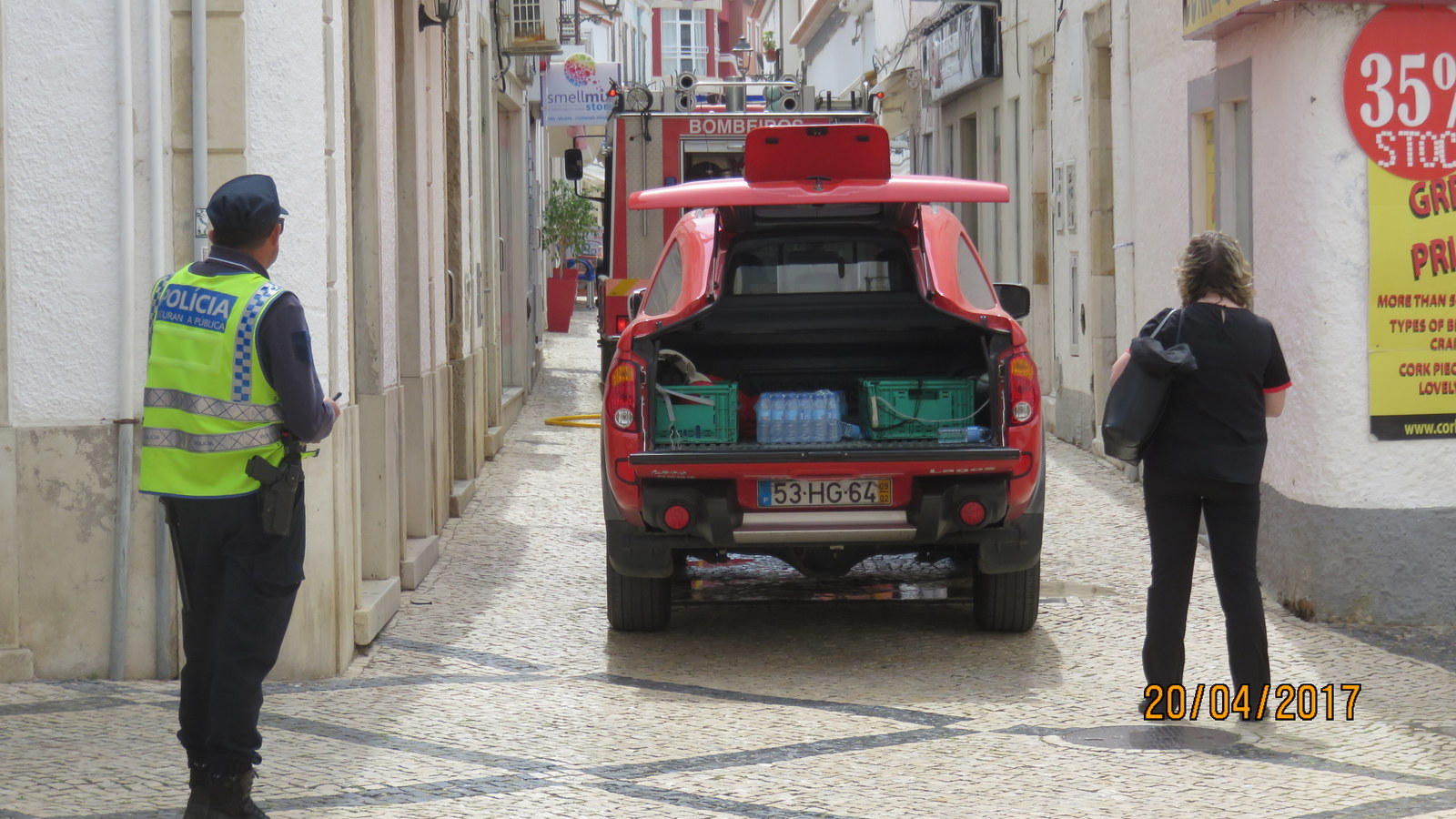 Kävelyretki Lagosin vanhaan kaupunkiin syömään Intialaisessa Kohinoor ravintolassa. Ravintolalla on juuri meille sopiva turistimenu jossa koko ateria, liha kulhossa, riisi ja nan leipä samalla lautasella ja vain sen verran että sen jaksaa syödä. Eilen oli tuulta 5 bft ja kaupugissa oli palokunta työnsä ääressä.