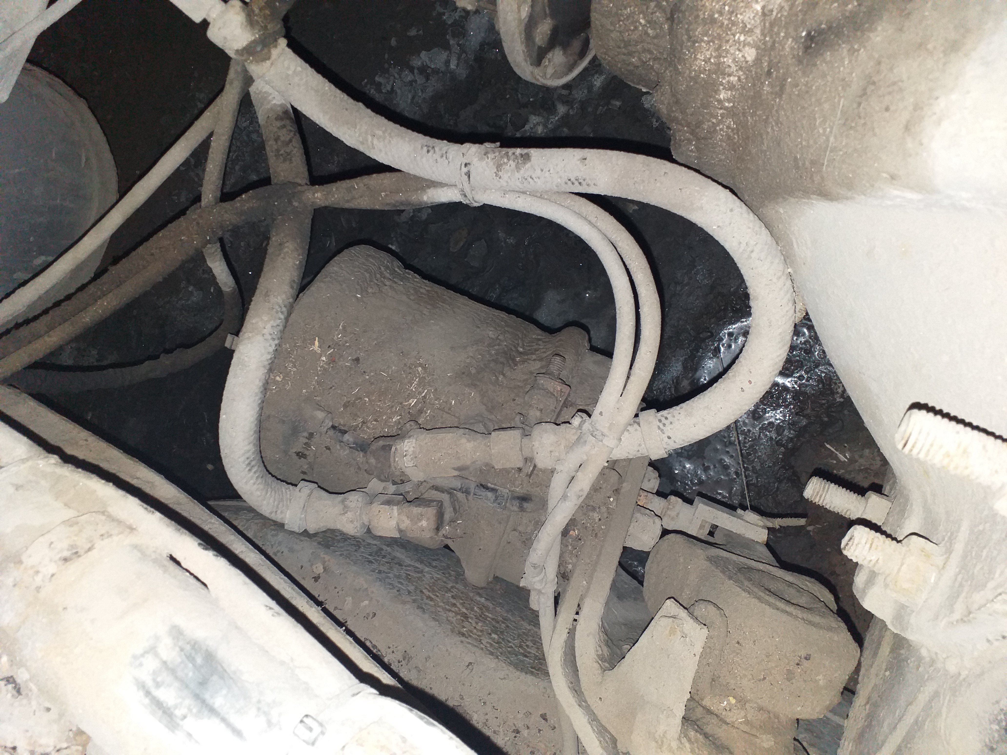 Mikä letku on tuo kuvassa alimmaisena eristeen pätkällä suojattu letku? Onko se paineilma jarrukellolle? Että onko turvallista avata noin vain, vai onko jotain varotoimenpiteitä tehtävä? On niin pykinyt että haluan vaihtaa tuon.