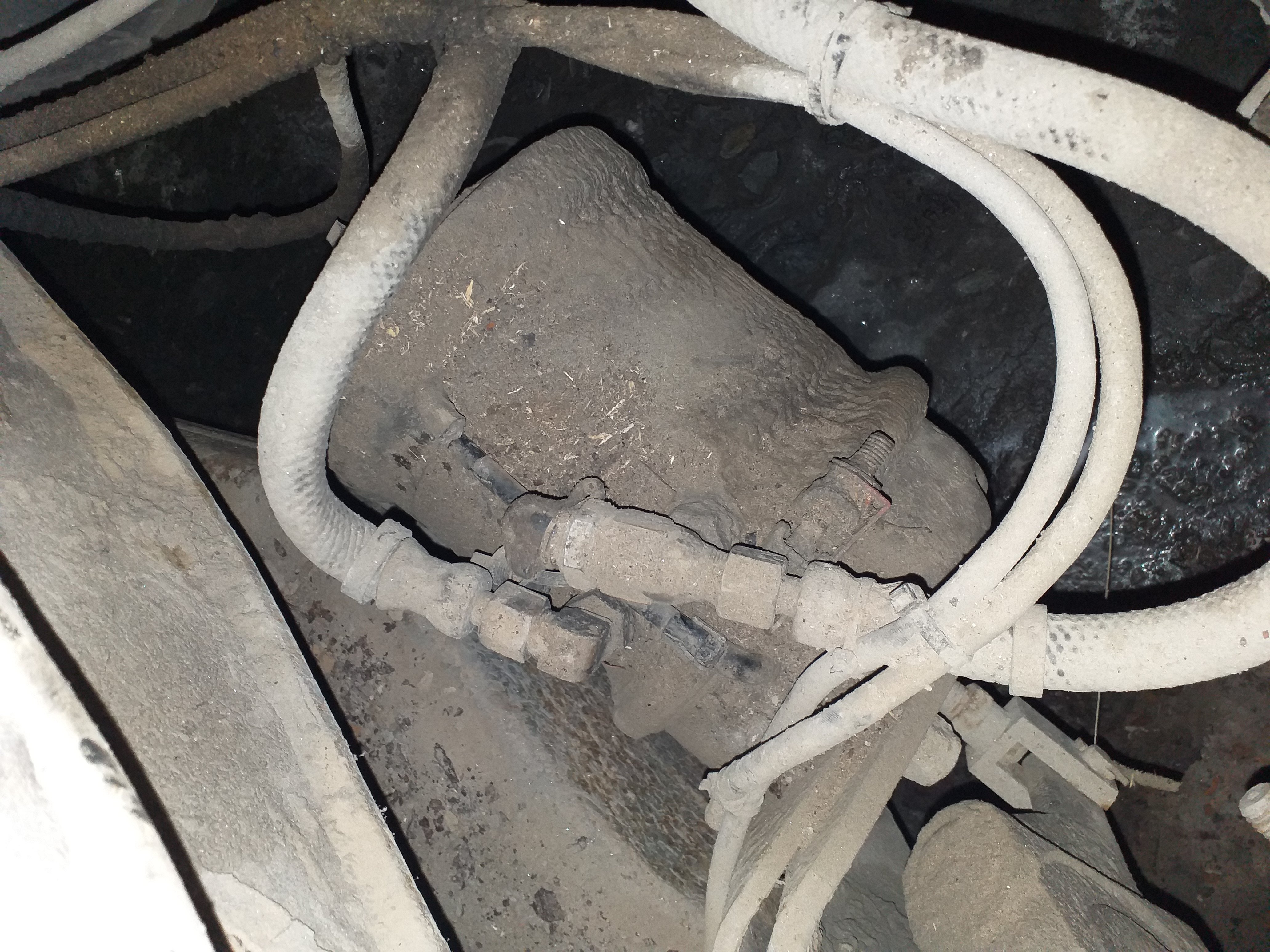 Taka-akselin edessä vasemmalla takana, tuo möhkylä, mikä se on?, niin sen päällä on tuo muoviletku palasina, oli irti toisesta päästä ja kun hipasin niin murtu toisestakin päästä. Toisella puolen on ehyt. Mikä tuo on, miten korjataan, ja mikä tuo lieriö ylipäätään on?