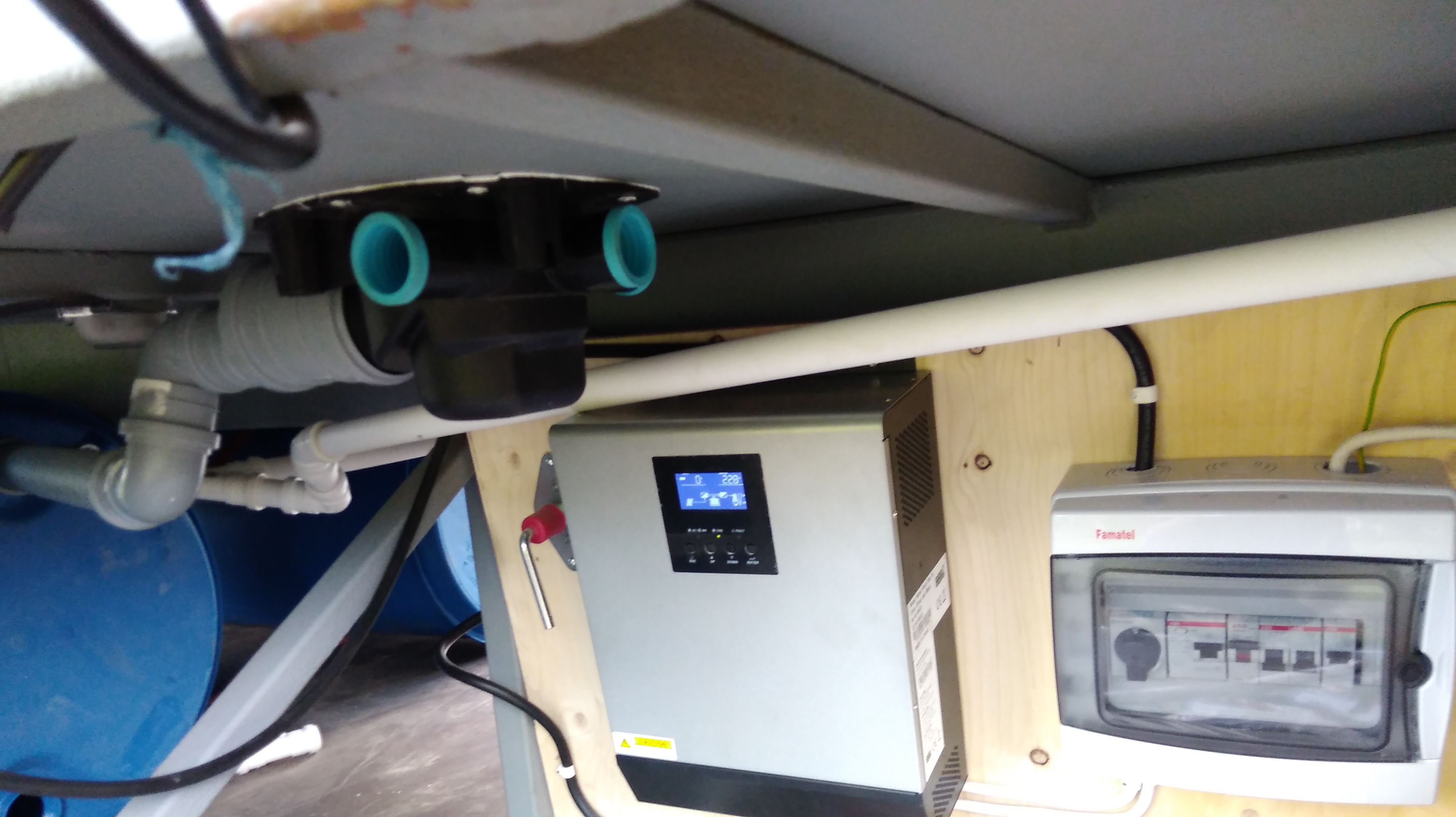 Akusto 24V 460Ah, invertterilaturi 3Kw/25A/30A, aurinkokenno 270w (toinen varmasti tulee hankintaan) ja aggregaatti 2Kw digitaalisesti.