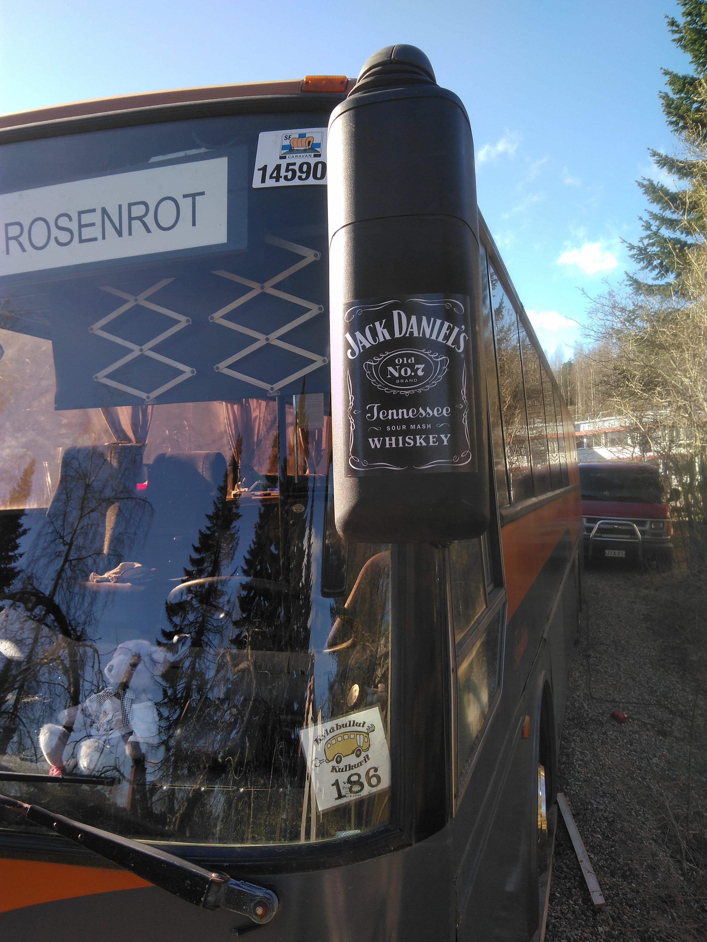 Teetä tarra printti jack daniels pullosta kaulasta alaspäin ...taippaat sen tohon peilin etukuoreen yltäen sivuista asti :wink: