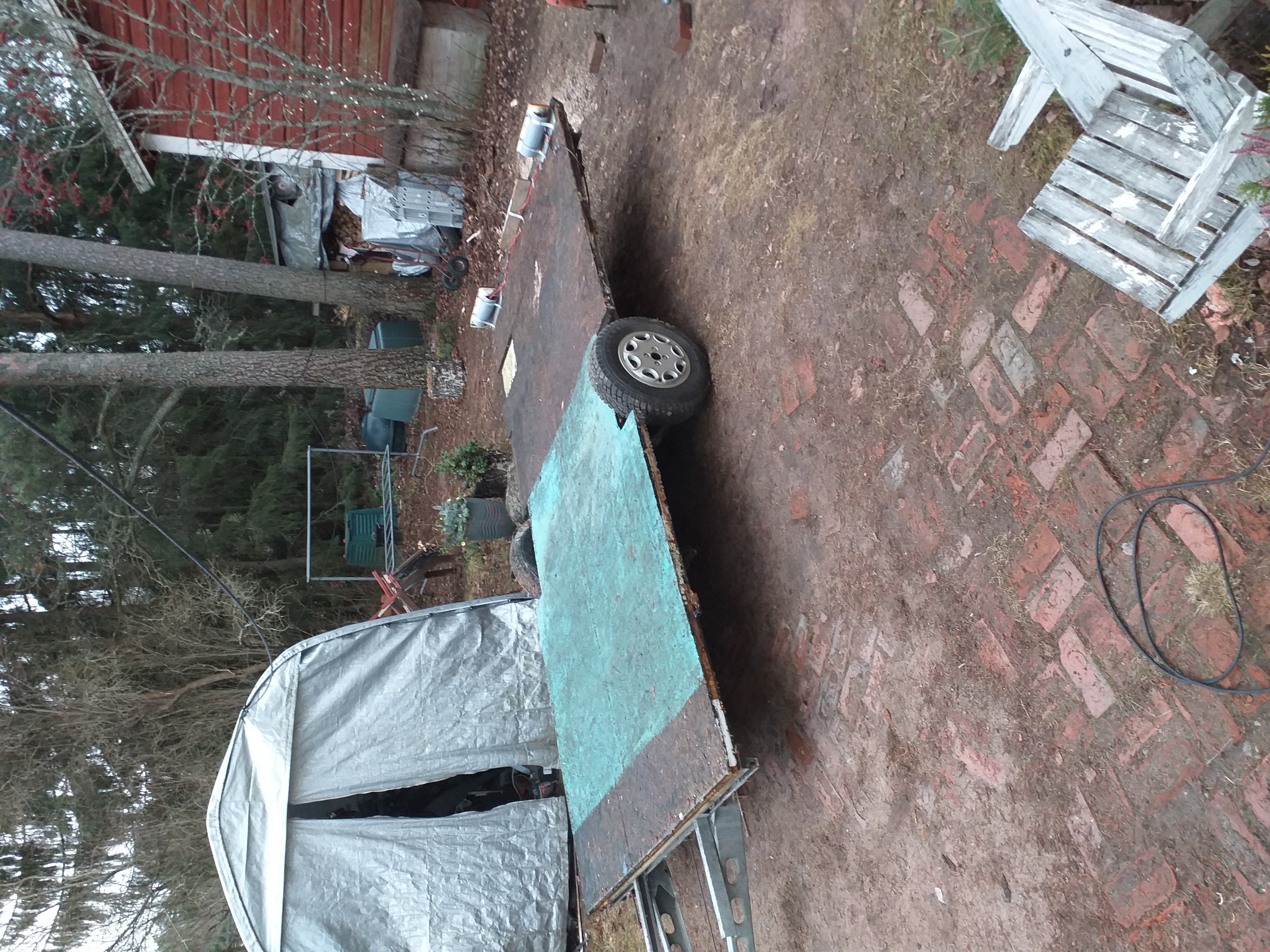 Päivitetääs vähän. Elikkäs sain nepiltä ostettua asuntovaunun alustan se on hyvä. Kiitos. Noooh, siinä on levytys valmiina. Minäpäs en sitä tarvitse, toisekseen tuo painoa aikalailla, varmaan lähemmä 200kg, niinpä aloin purkamaan sitä toissa päivänä. Nyt on jännetupintulehdus, moottorisahan ketju entinen epätoivo ja sitä lavaa on purettu vasta 50cm matka. Neppi vissiin alkanut tekemään ydinpommin kestävää vaunua. Pittää yrittää saada otettua pienempikokoinen kuvan nykytilasta kun ei antanut liittää, mutta ohessa kuvat lähtötilanteesta.