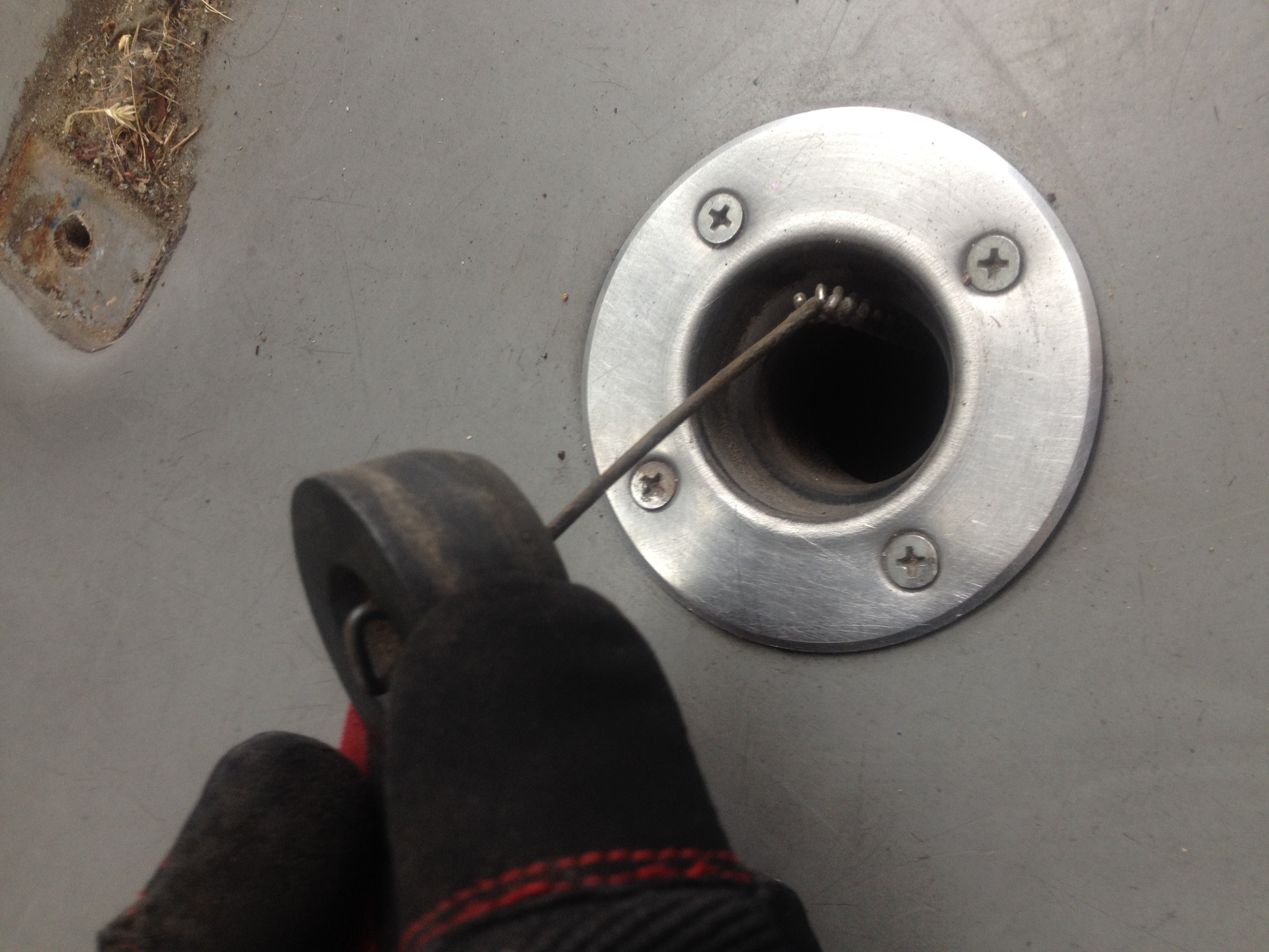 Tänään siivottu raivoisasti. Koko päivän tulos, taka-akselin takapuolelta on roskat pois ja lattiat pesty. Puhutaan siis noin 2,5m lattiapituudesta. Senytvainonniinet jos takapenkkiriviä ei koskaan oo käytetty irti, ni 25 vuotta on paljon paskaa. Ja tiukas! Surutta pesuaineella kaikki märäks, tiskiharjalla ja räteillä hinkutusta ja sit laskin vesiletkulla miähnät pois. Tossahan on niitä lattialuukkuja nyt sitte. Vaan onpa muutaki! tommosia tulpanreikiä on pitkin poikin. Niistä menee rööri ulos. Helpompi letkulla pestä. On!