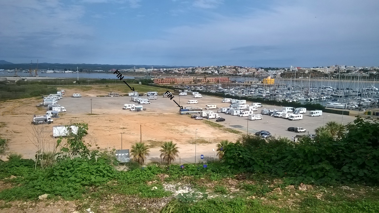 Saavuimme talvehtimisalueelle 19.10 olimme ensiksi kolme päivää Olhãon kämppärillä jonne jätimme saattomiehemme. Hän seurasi perässämme aina Vuosaaren satamasta alkaen. Pari yötä Silves 80 km länteen linnoituskaupunki 700 luvulta (itse linnoitus). Nyt olemme Portimaossa jossa tutkailemme nykyisen 2,50€ parkin historian loppumista huomenna. Paikka siirtyy uudelle omistajalle maanantaina jolloin alueen pitää olla tyhjä. Mitä sitten uusi omistaja tekee maanantaina sitä ei vielä tiedä kukaan.