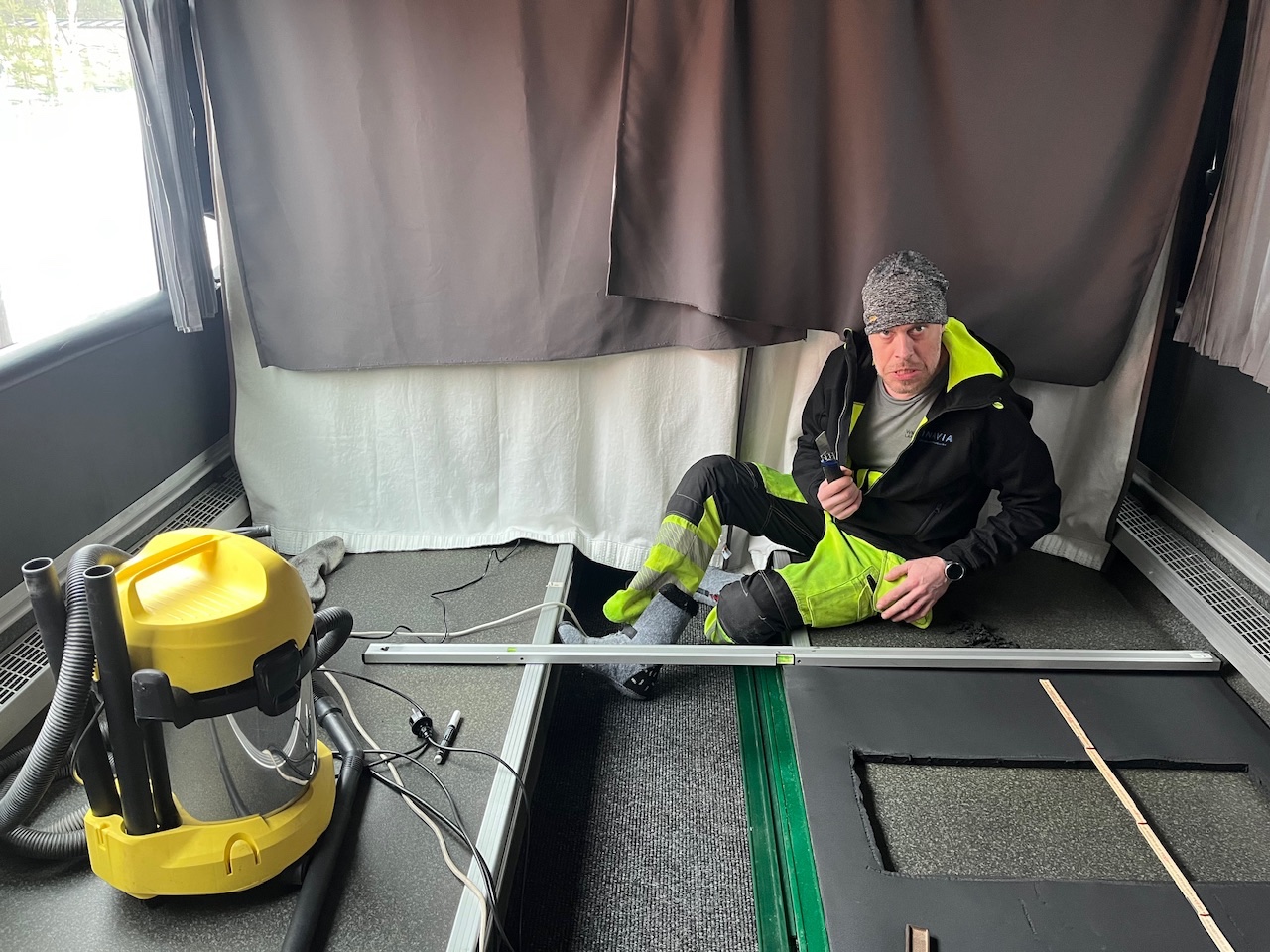 Alkaa olee väliaikaisikkunaeristykset tehty. Ne eroaa lopullisikkunaeristyksistä sillei et liima on teipin kahtapuolta, ei ikkunassa ja eristeessä. Takamakkarin etuseinää toimittaa teleskooppitanko ja lämpöverho. Sähköpattereilla ja raksapuhaltimella lämpiää. Huumoriakut tuli Saksasta, en muista mit...
