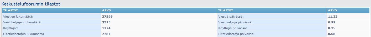 Otin tuolta ylläpidon puolelta vähän dataa. Mukavan aktiivinen tämä foorumi, vaikka välillä kaipaisi lisää projekteja esille!
