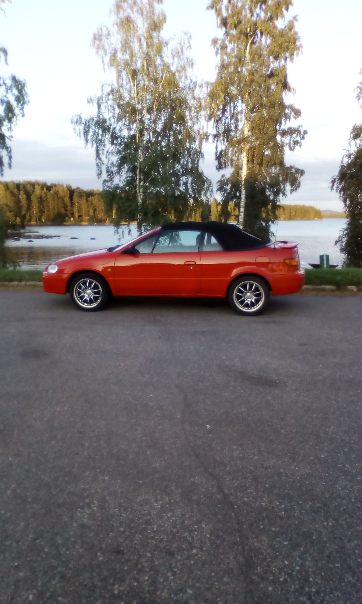 Isä-ukon entinen tila-auto jäi meille kun hän siirtyi taivaalliseen kirkkokuoroon. Laitoin myyrän myyntiin ja eilen se vaihtui pieneen harraste ajoneuvoon. Toyota paseo cabriolet, 4-paikkainen avoauto, kirkkaan punainen. Pituutta vain 4m, painoa 1000kg, todella hauska peli ajella.