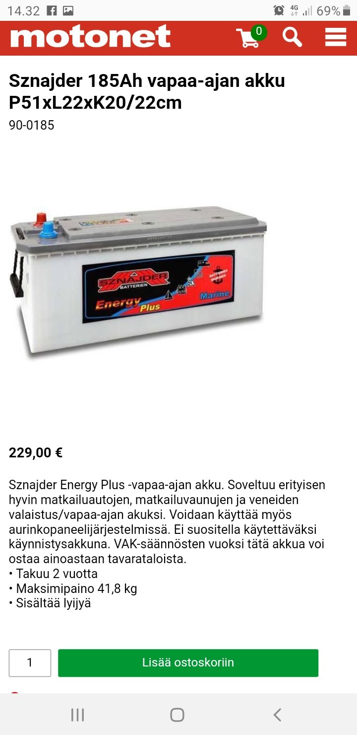 Onko kellään kokemusta, Lahen Puuilo kauppaa 180Ah Energie+ original premium battery 1100A (EN) akkuja käypään hintaan.