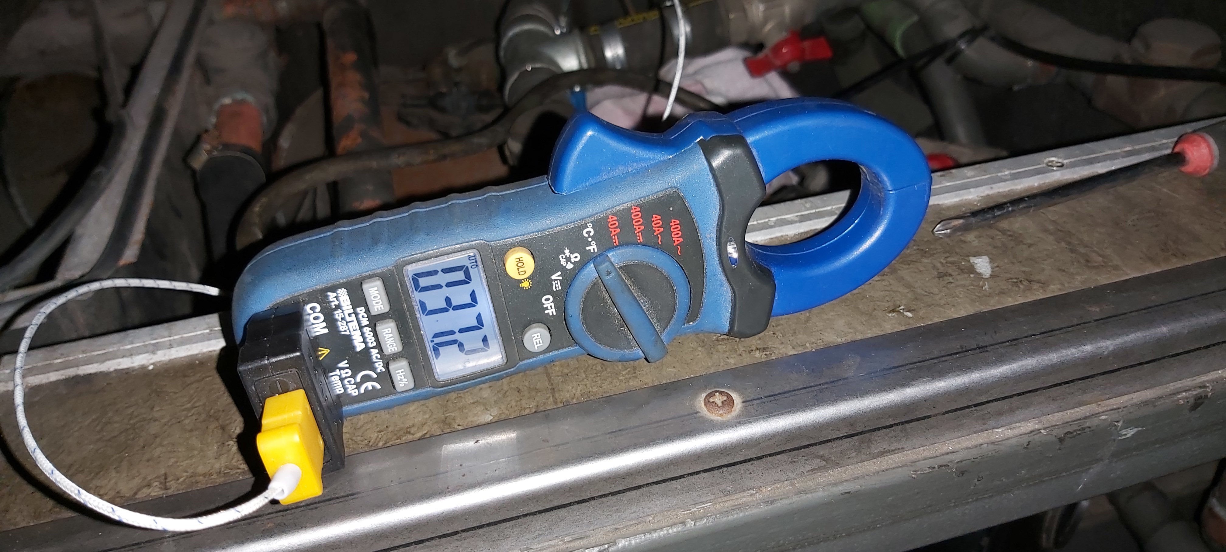 Lähdin mittaamaan lämmityksen lämpötilaa. Vanha anturi nousi ensiksi hyvin ja sammutuksen jälkeen laski noin neljäänkymmeneen celciusta. Jäi sitten 4:n kympin kohdalle välillä käynnistyi ja sammui.