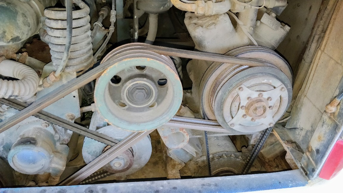 Kokeilin bussia käyntiin niin että oli tuo uusi laturi vielä pöydällä, eli vain tuo isompi laturi paikallaan. Hyvin toimi, kataa tasan 28V joka kierroksilla ja laturivalo toimii oikein.