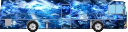 Tässä kuvassa on aiheena jääpeitteen / lohkareiden välistä tulevat auringon säteet ja vedealaiset purkaukset, hait, mustekalat ja muut efektit...tuo kuva 12 m pitkänä ja reilu 2 m korkeana on varmaan hiukan huikaisevampi sitten luonnossa kuin nyt tuossa koossa netissä. Tietysti kylkeen vielä auton nimi, joka on poppis 8)
