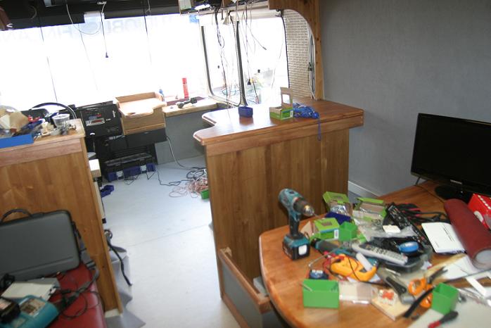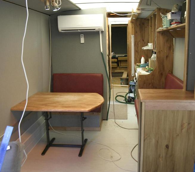 No ei mennyt juhannuksen seutu pelkästään rilluttelun merkeissä vaikka sitäkin riitti :lol: Sain vihdoin 250 l vesisäiliön sisätiloihin nyt vain muutama letku paikoilleen :) Ohjaamokin sai muutaman puuosan ja johtoja poistettiin ja lisättiin... sain taas näpeille kun otin liian monta päätä yhtäaikaa nyrkkiin :lol: