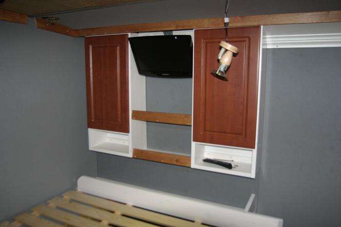 Tuli tänään iltapuhteeksi muutama muhkea männynkappale valojen kera. Sain vihdoinkin asennettua tv käntömekanismilla kattoon :shock: