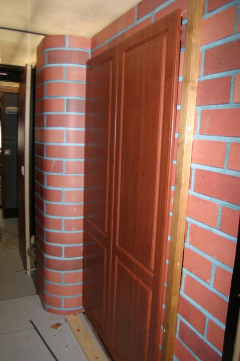 Tiiliseinätkin sain tehtyä miltei valmiiksi :D Makkarin kattoon ilmestyi pikkutelkku ja kaapistot pikkutarpeita varten. Sähkötyöt on tehty huolella ja riittävillä vedoilla..laitettiin muutamaan paikkaan ylimääräinenkin johto tulevia tarpeita varten....muta hommaa on aivan tarpeeksi lähtö kun olisi jo viikon päästä ensimmäiselle kierroselle :?