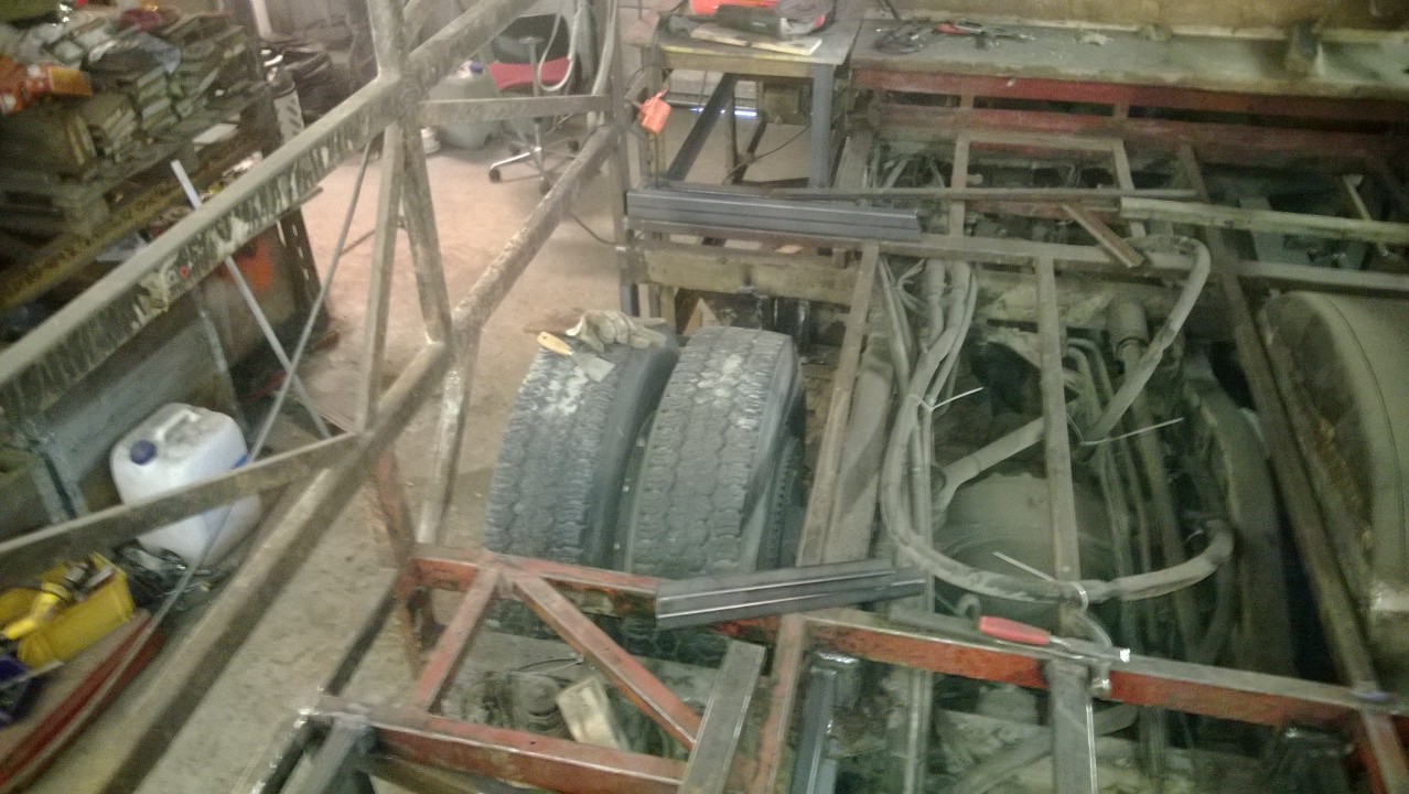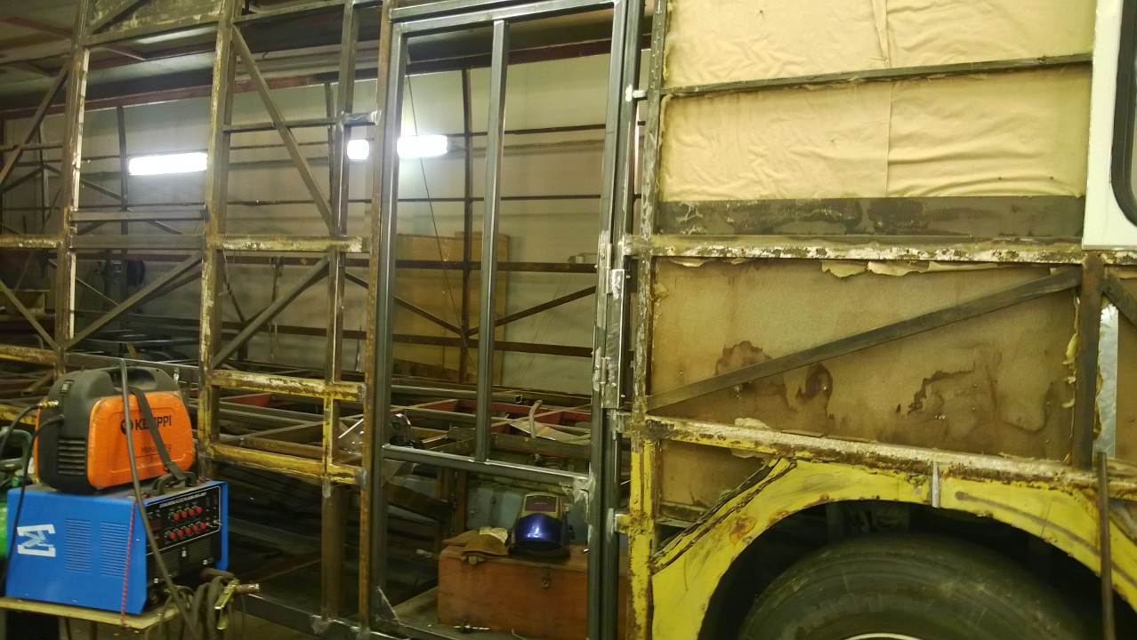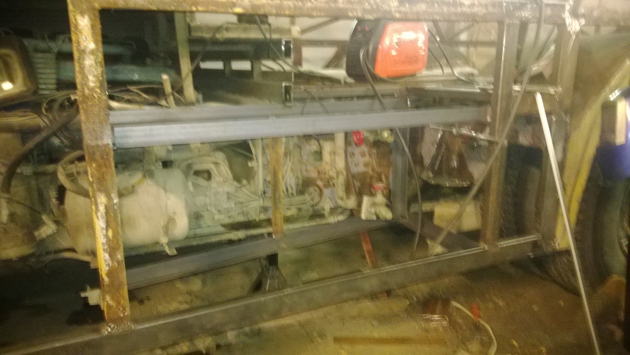 Tommosen rauta hässäkän mää siihen sitte väsäsin "rungoks" .Toinen puoli sai saman käsittelyn... Siitä syystä että mulla olis suunnitteilla tehdä sille puolelle "kerros sänky/sohva viritelmä"...:D ja alimman vuoteen/sohvan istuin osan alle olis tarkoitus tehdä auton "puhdasvesi säiliö" :) (en keksiny muuta paikkaa) :D onhan siinä paikassa se hyvä puoli että sitä ei tarvi erikseen eristää...:D