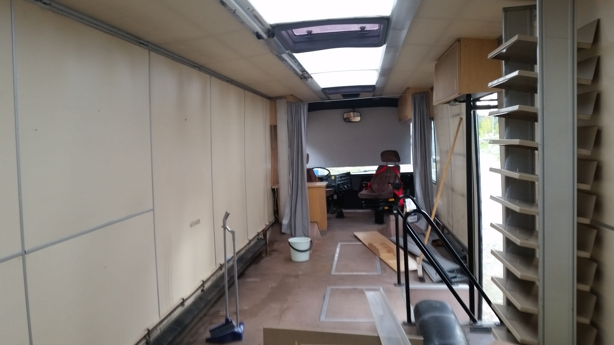 No asiaan autonkuljetus tilasta tulee 3,3m pitkä ja bussin leveydestä se ei vie ku 152 cm tarkasti ottaen.84 cm jää toiseen reunaa tilaa..ja älkää nyt mistään saunasta alkako puhumaan kohtahan se on tehtävä