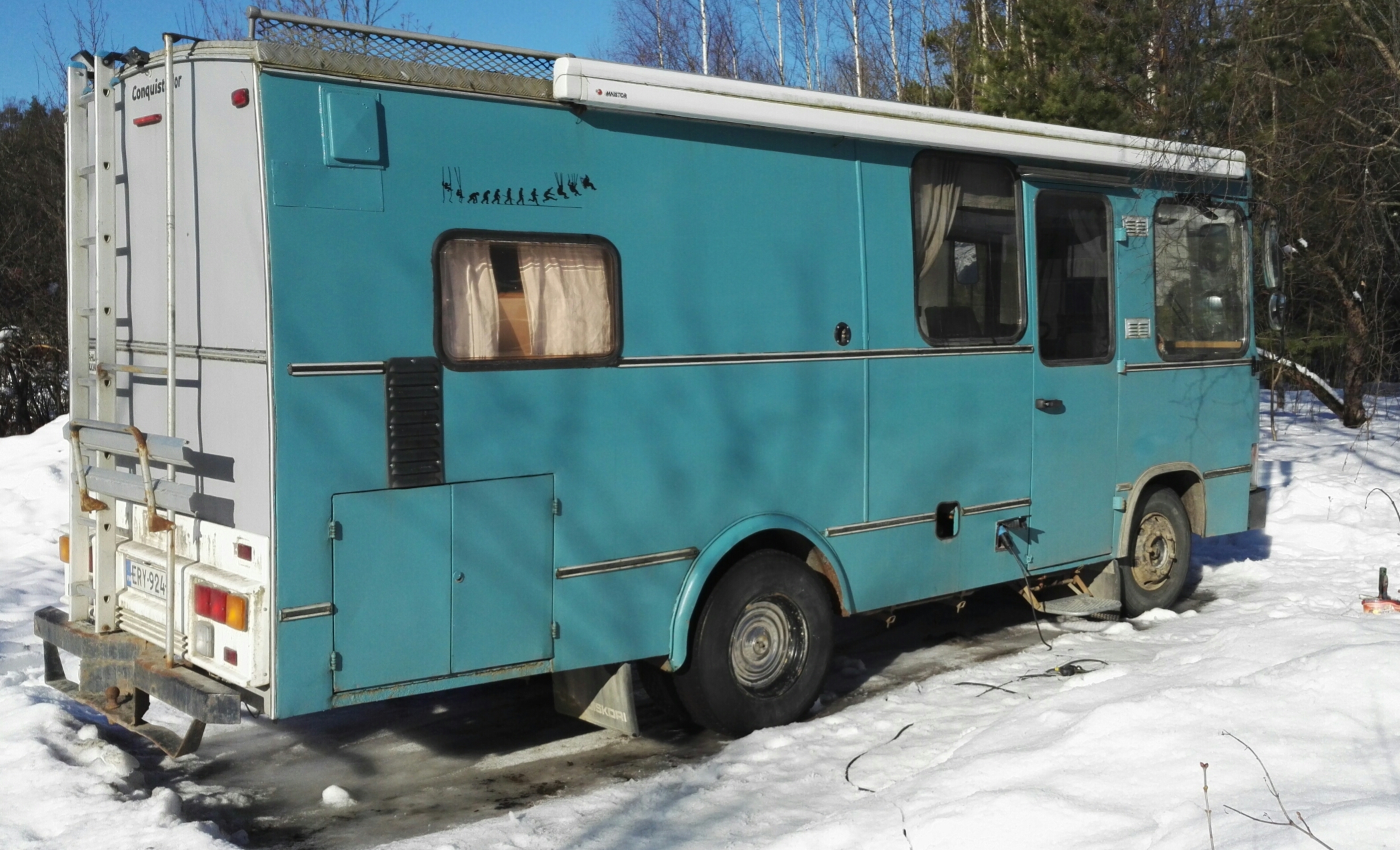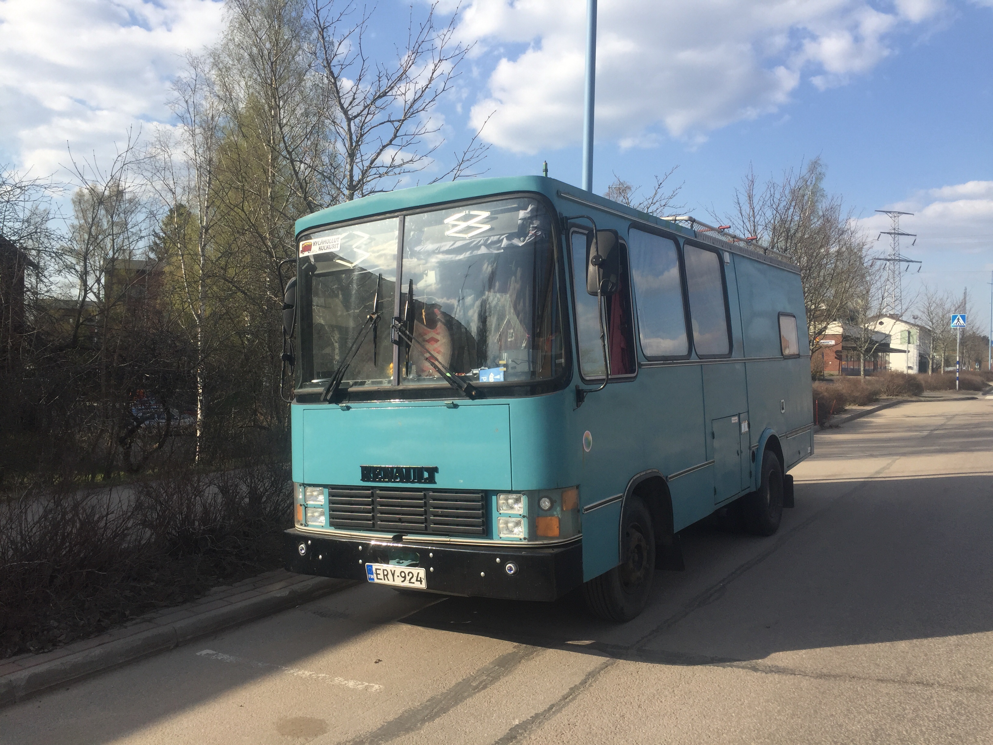 Ostin tuossa talven päättyessä Jalasjärveltä teille monelle tutun Posti-Telen vanhasta Topparoikasta Kulkuriksi tuunatun Renault Saviem S 130:n.