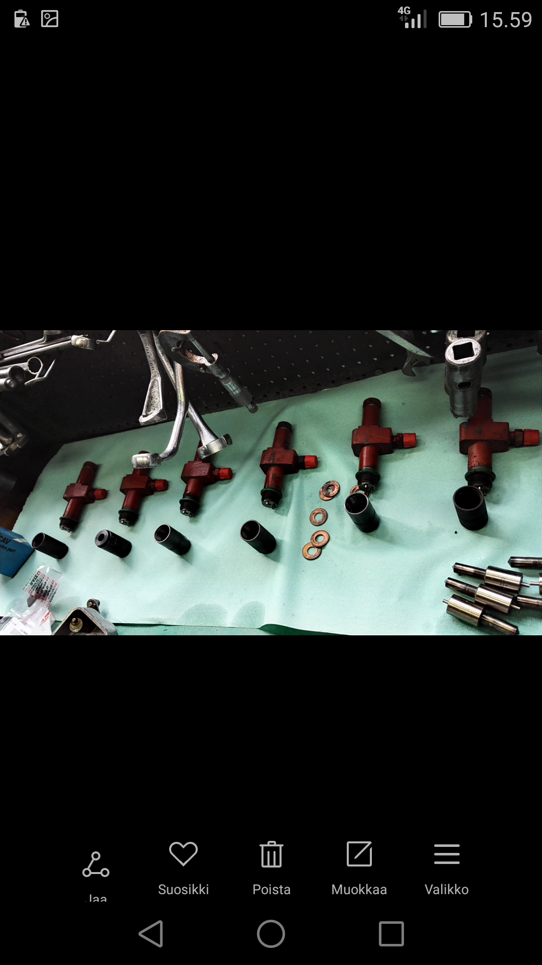 Viimeksi vaihdatettiin suuttimet ja Diesel Hakalan ammattimies Kouvolassa sanoi, että olikin melkoisen työn takana irroitella ilmeisen alkuperäisiä, kolmekymmentä vuotta paikallaan olleita suuttimia ja etenkin niiden runkoja. Uudet suuttimet muuttivat moottorin ääntä entistäkin pehmeämmäksi. Tehoja ehkä vähän menetettiin, kun tuntuu ettei ole niin kurkku auki koko ajan, mutta hiljaa hyvä tulee.