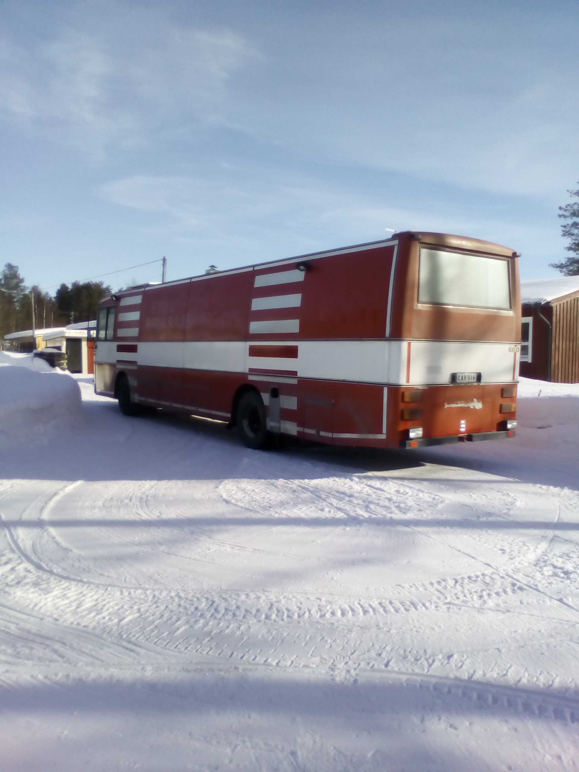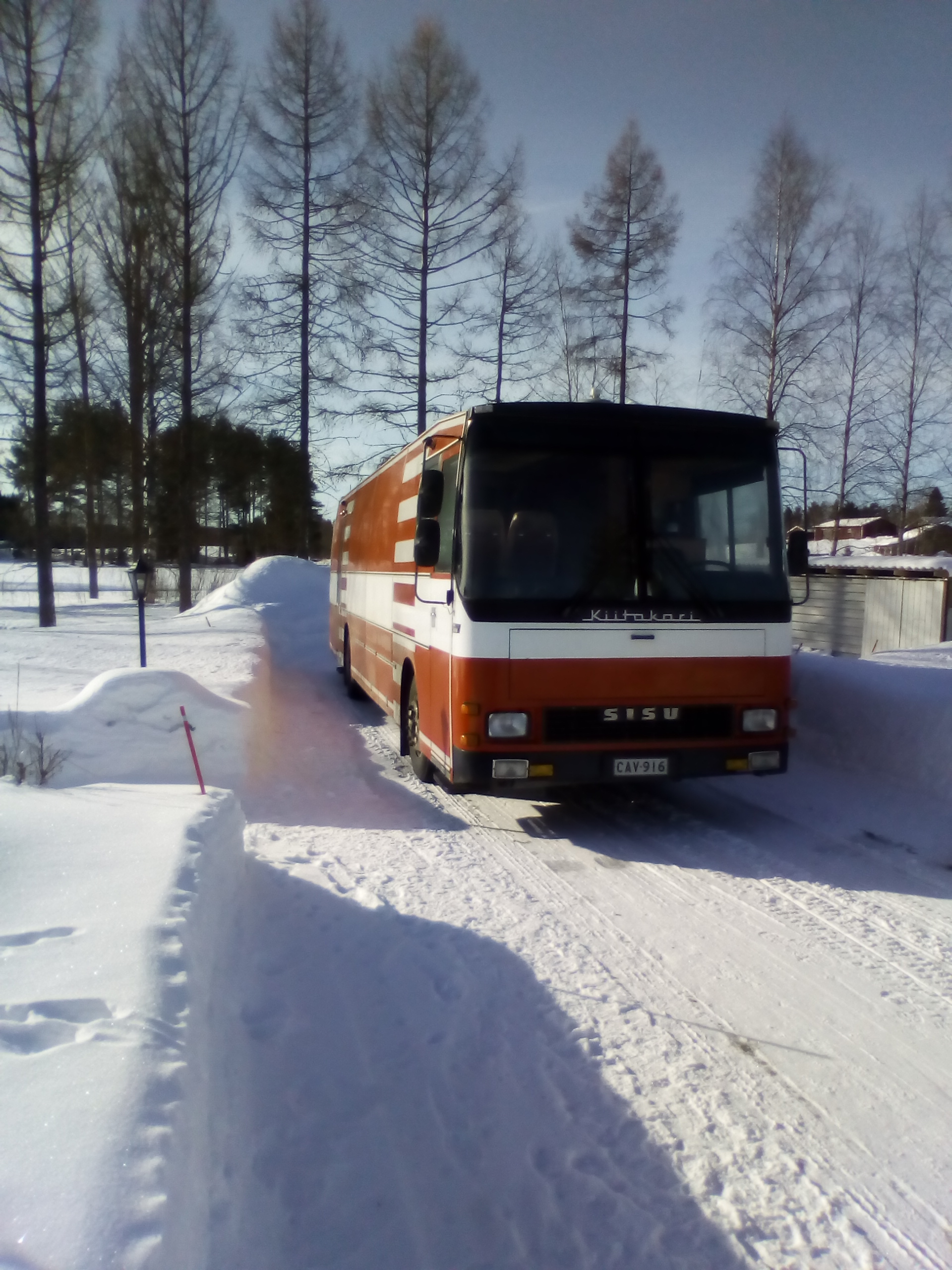 Vielä se on tuossa pihalla, ei ollutkaan pahaa unta... Eli autohan on moni-sisu, sisu sb150vd. Alunperin ollut Kotkassa kirjasto-autona sitten Kymenlaakson pelastuslaitoksen johtoryhmän autona. Kylähullu 247 muuttanut matkailuautoksi, nyt on meillä. Mittarissa huimat 147tkm. Moottorina Valmetin 611 turbo mahuri, laatikkona 6-lovinen manuaali. Väritys ei muutu ulkoapäin, sisusta muokataan sitten kun ennätetään. Ajatuksena on rakennella perään autonkuljetus tila että saa avoauton kyytiin mutta katsotaan mitä tuosta tulee...