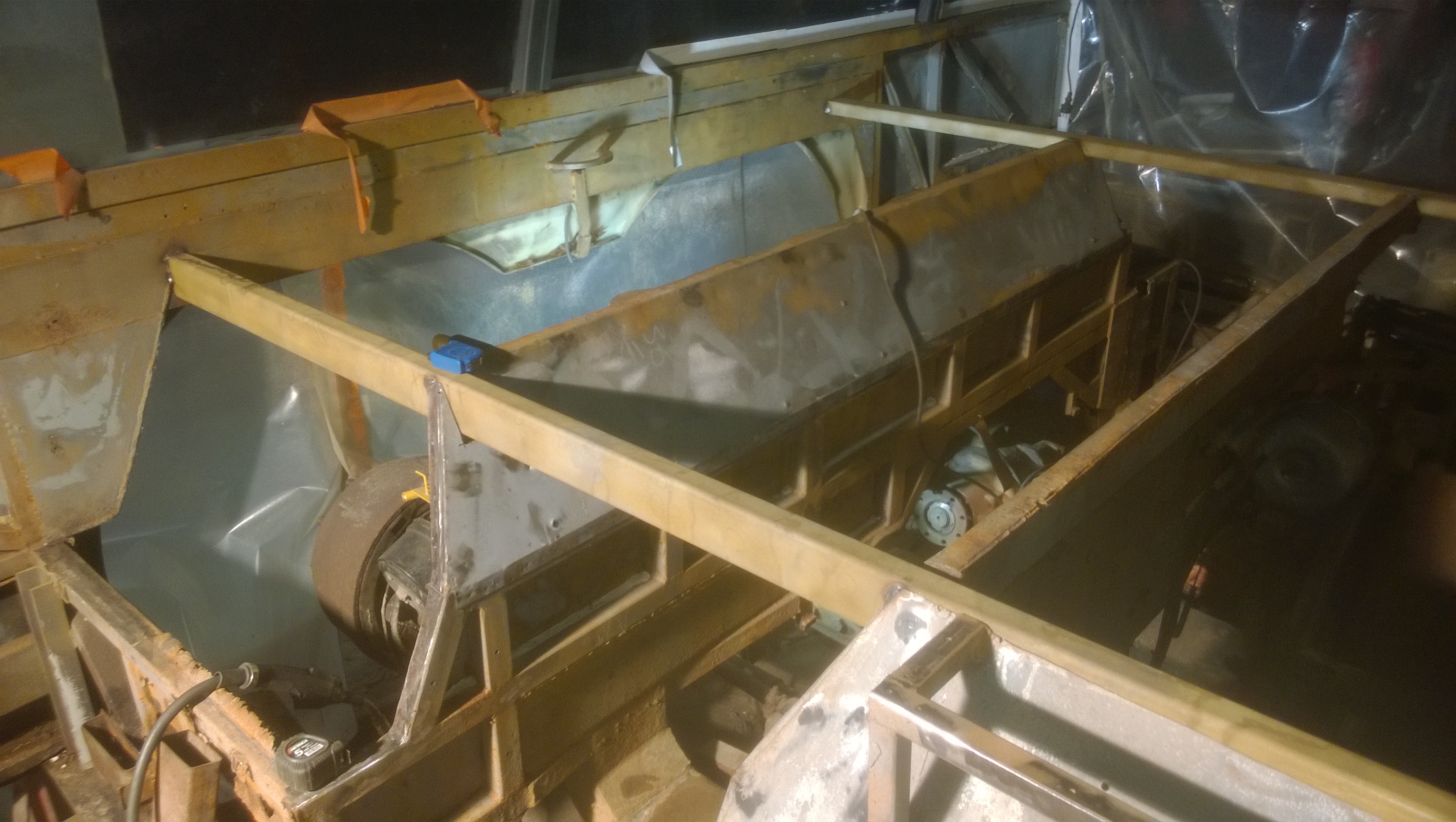 Ennen ja jälkeen. Nyt olis kaikki pussilautaset ja iskari kiinnikkeet uusittu. Ja kaikki huonot putket vaihdetut. Seuraava vaihe hiekkapuhallus ja maalaus ennen pyöräkotelopellitys...