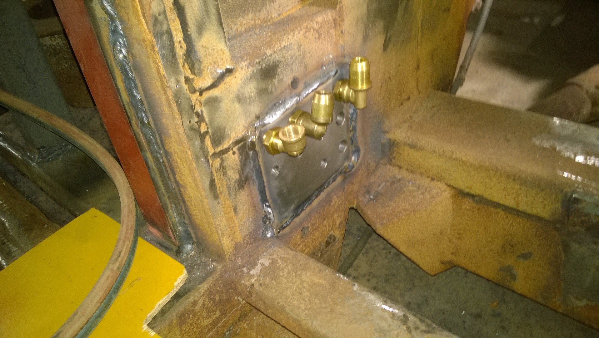 Kaikki ABS sun muut venttiilit pääsee sisätiloihin, ja täs on läpivientipalikat mikä hitsattiin pyöräkotelon seinään...