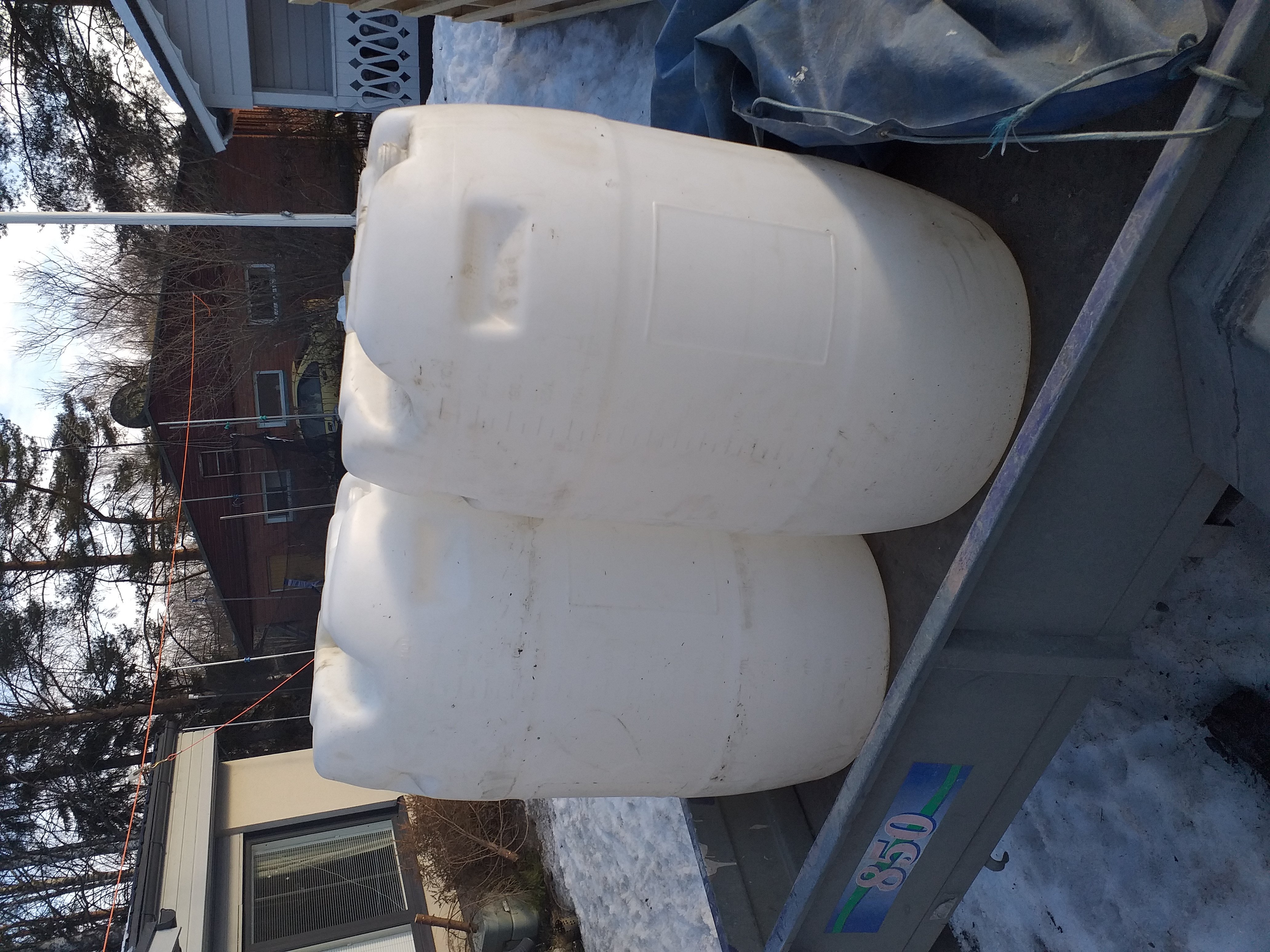 Suihku ja wc saa sitten vetensä näistä. Löysin 200 litran ponttooneja (oikeasti kemiran kemikaalipönttöjä vissiin) 2kpl yht.40€. Näihin saadaan siis 400ltr vettä. Kuullostaa paljolle mutta tavan suihkussa vettä menee 12ltr/min, niin tuo 400ltr riittää 33 minuutiksi.... säädetään painetta pienemmäksi, ja opetellaan veden säästöä, eli järjenkäyttöä veden kanssa.