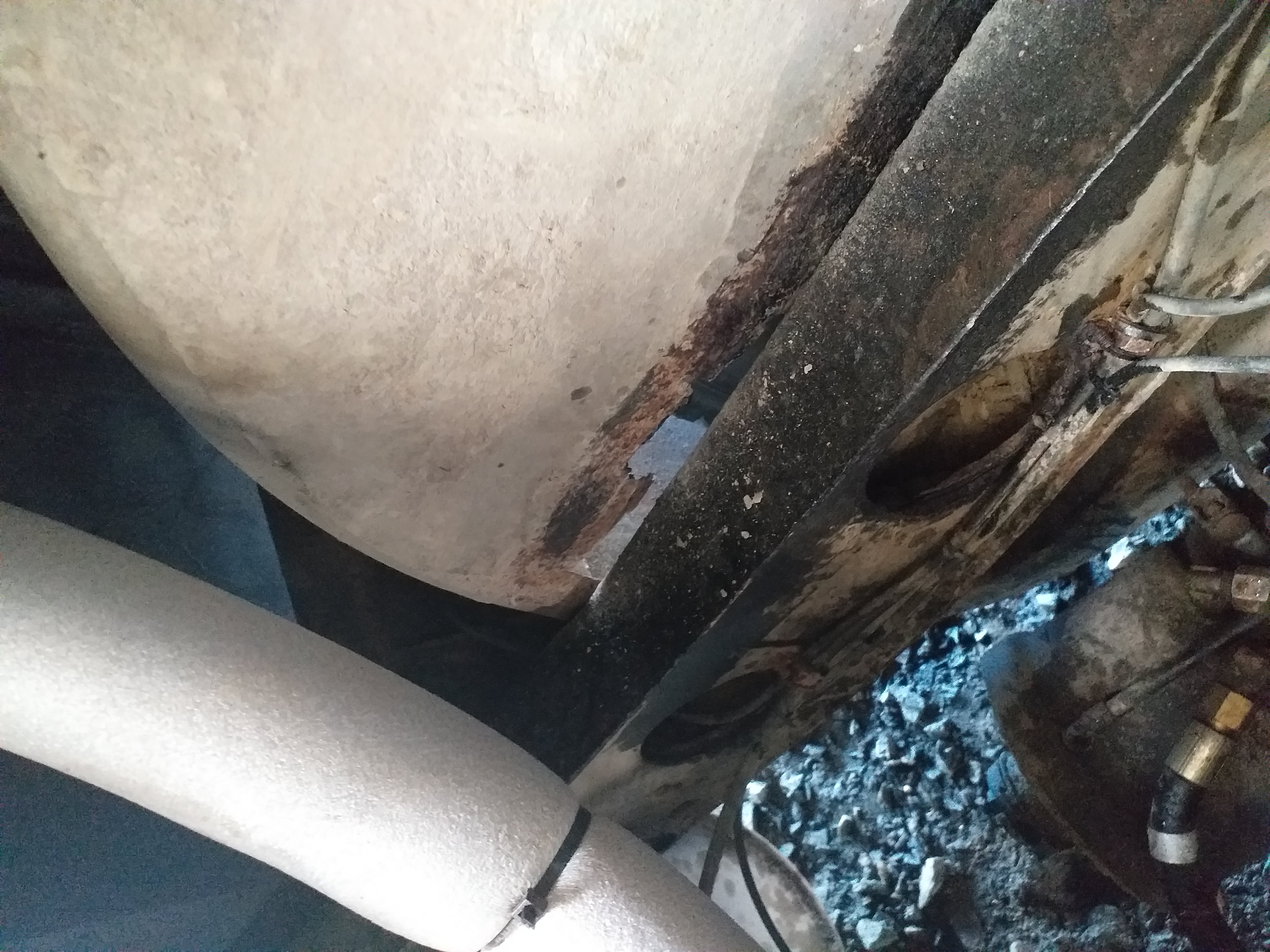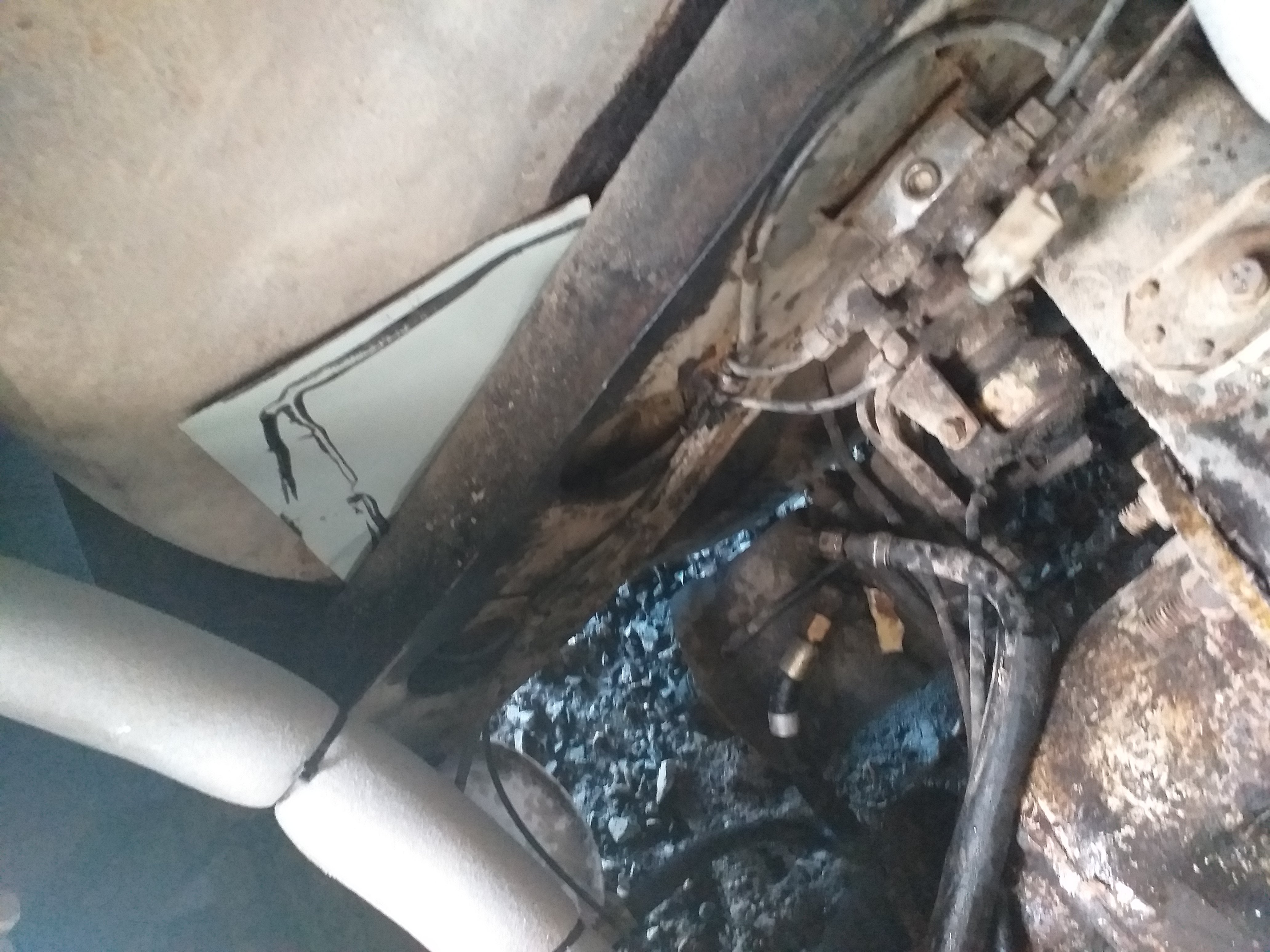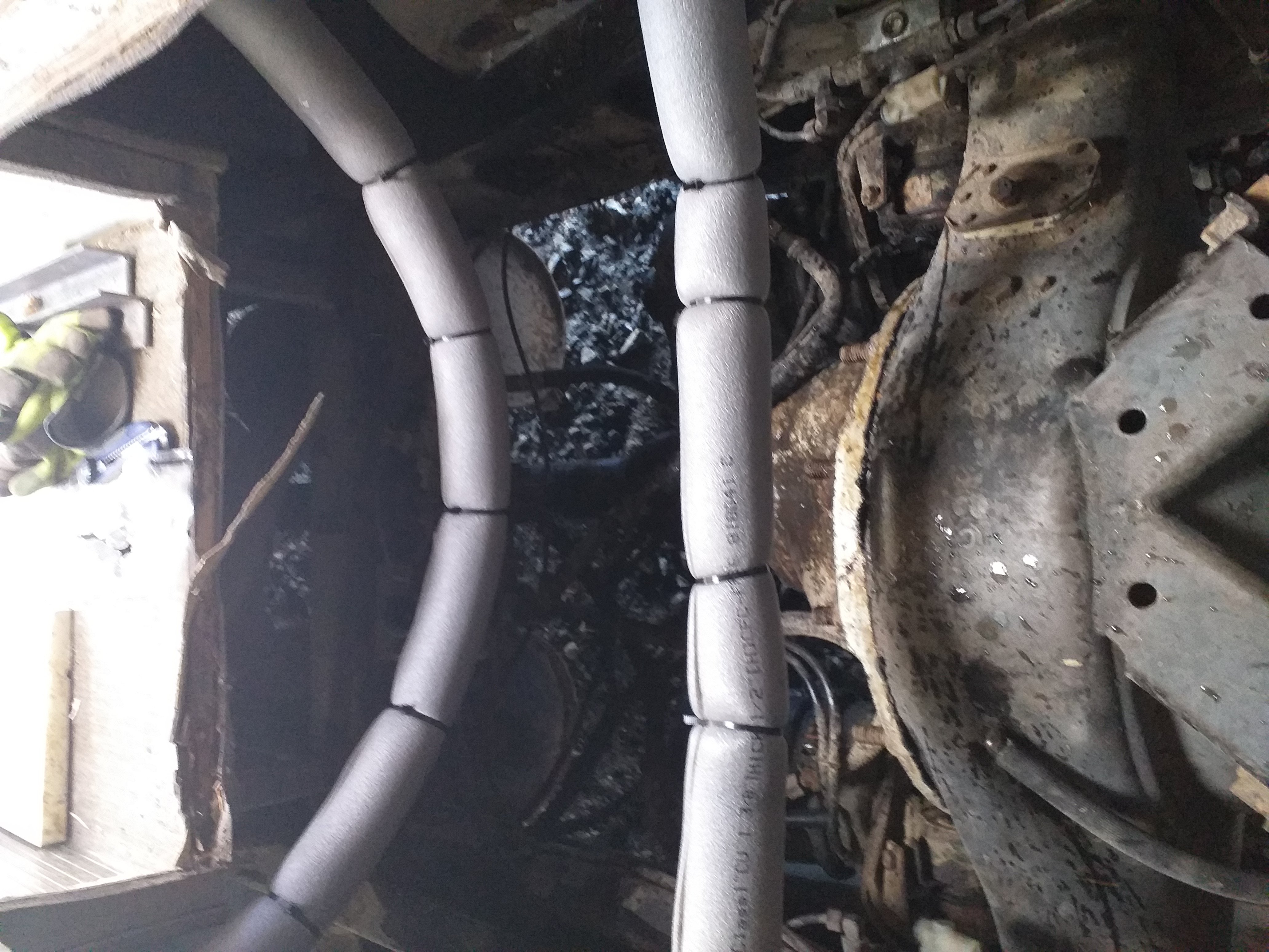 Pääsiäisen saldoa. Eristin lämmityspatterinputket auton alta, samalla paikkasin lokasuojasta reiän pellillä, sitten aloin tekemään lattialle runkoa.