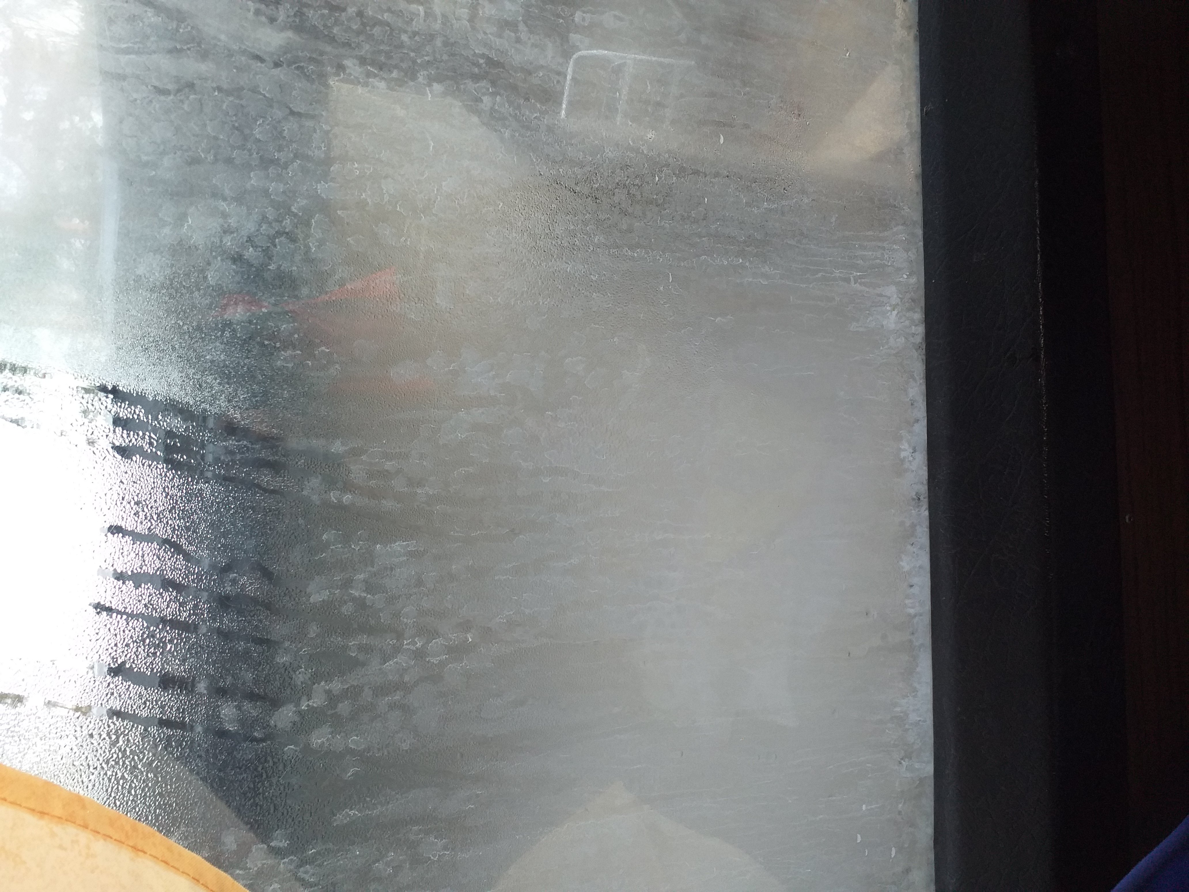 Prkl. Edessä on ikkunat saanut kosteutta sisäänsä. Etenkin vasemmalla ekat kaksi. Miten monena vuotena lie olleet tuommosia, en tiä. Eli miten yleensä, kuivuuko ja puhdistuuko nuo itsestään, vai jääkö harmaaksi ja rantuiseksi?