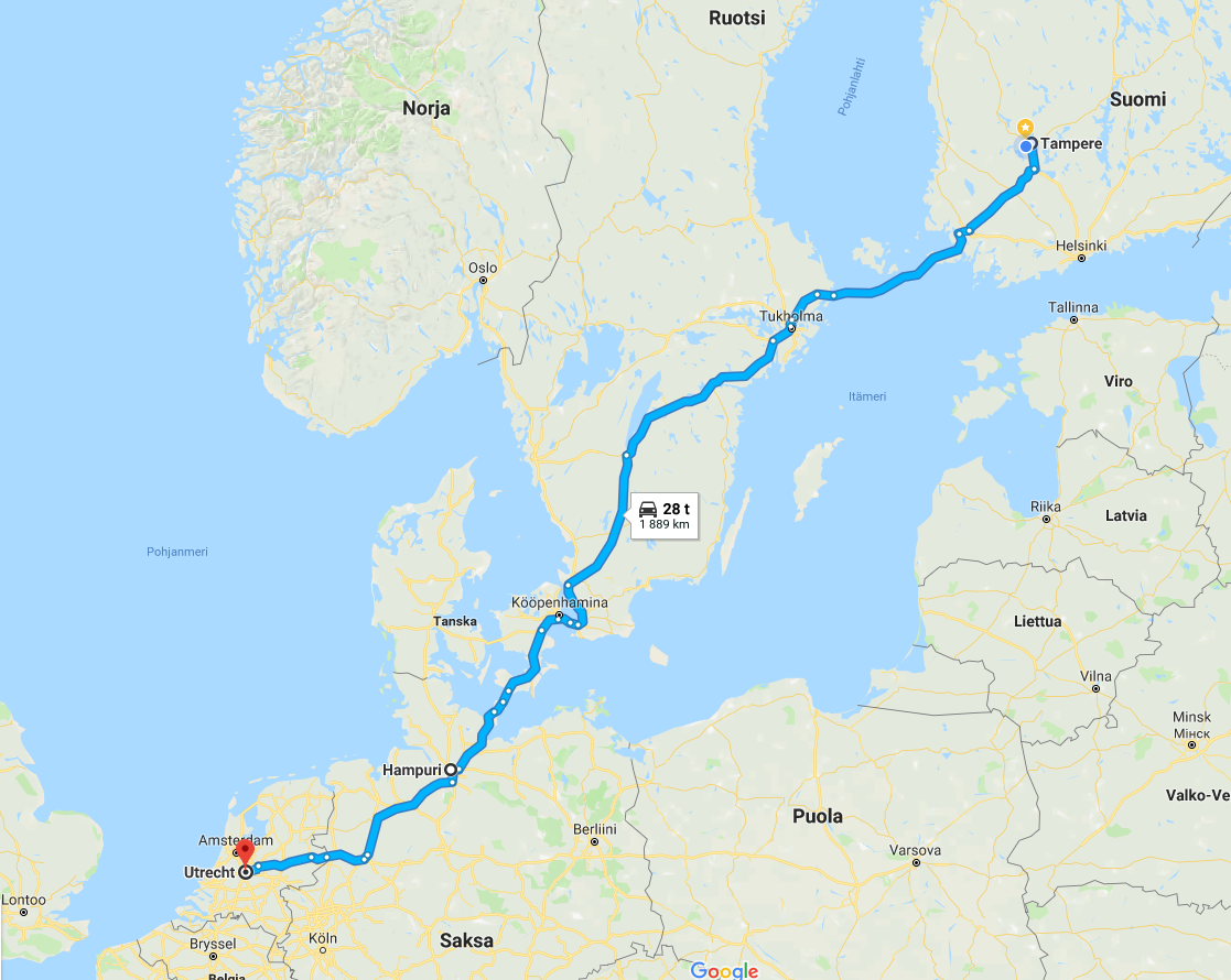 Tukholma - Köpis - Bremen - Utrecht - Amsterdam - Hampuri. Perjantaina lähtö ja seuraavana perjantaina paluu.
