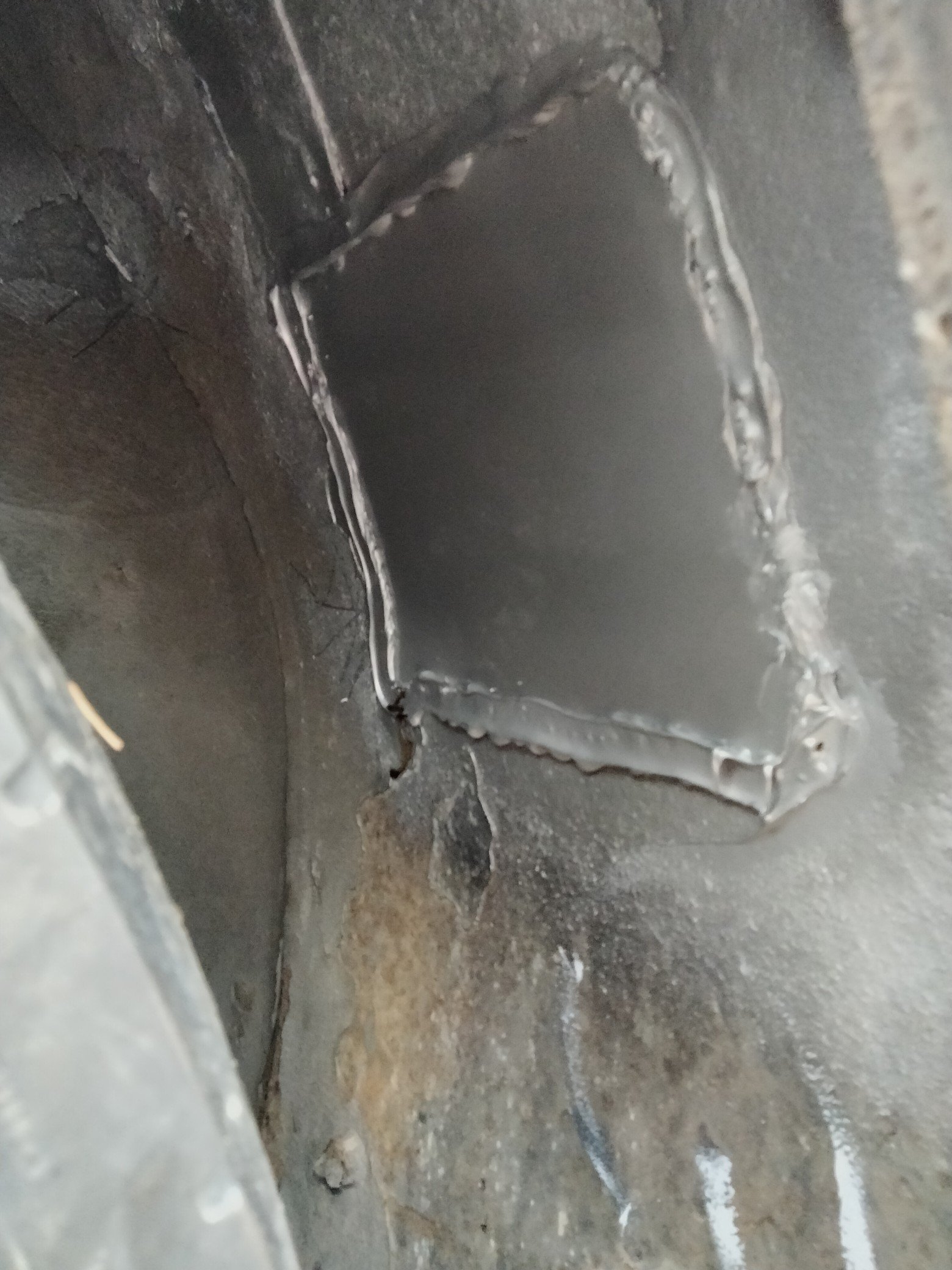 Sisälokari hitsattu, pyöränpultit vaihdettu ja sisusta koottu suurinpiirtein takaisin pyöränkaaren päälle.