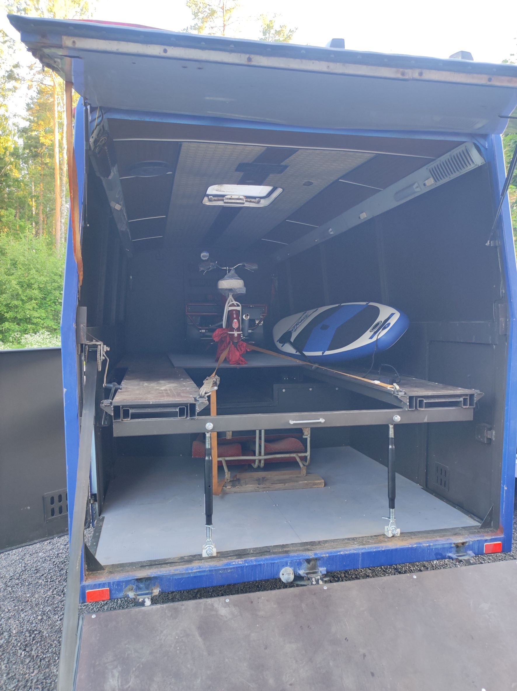 Ongelmana tuossa tuli sitten heti kättelyssä, että kun pitäisi Drifting autoa kuskata, jotka jostakin syystä tuppaa olemaan yleensä aika matalia, niin eihän tuo nykyinen tila oikein siihen käyttöön sopinut. Eihän siinä auttanut, kun purkaa koko perä ja rakentaa uusi pohja.