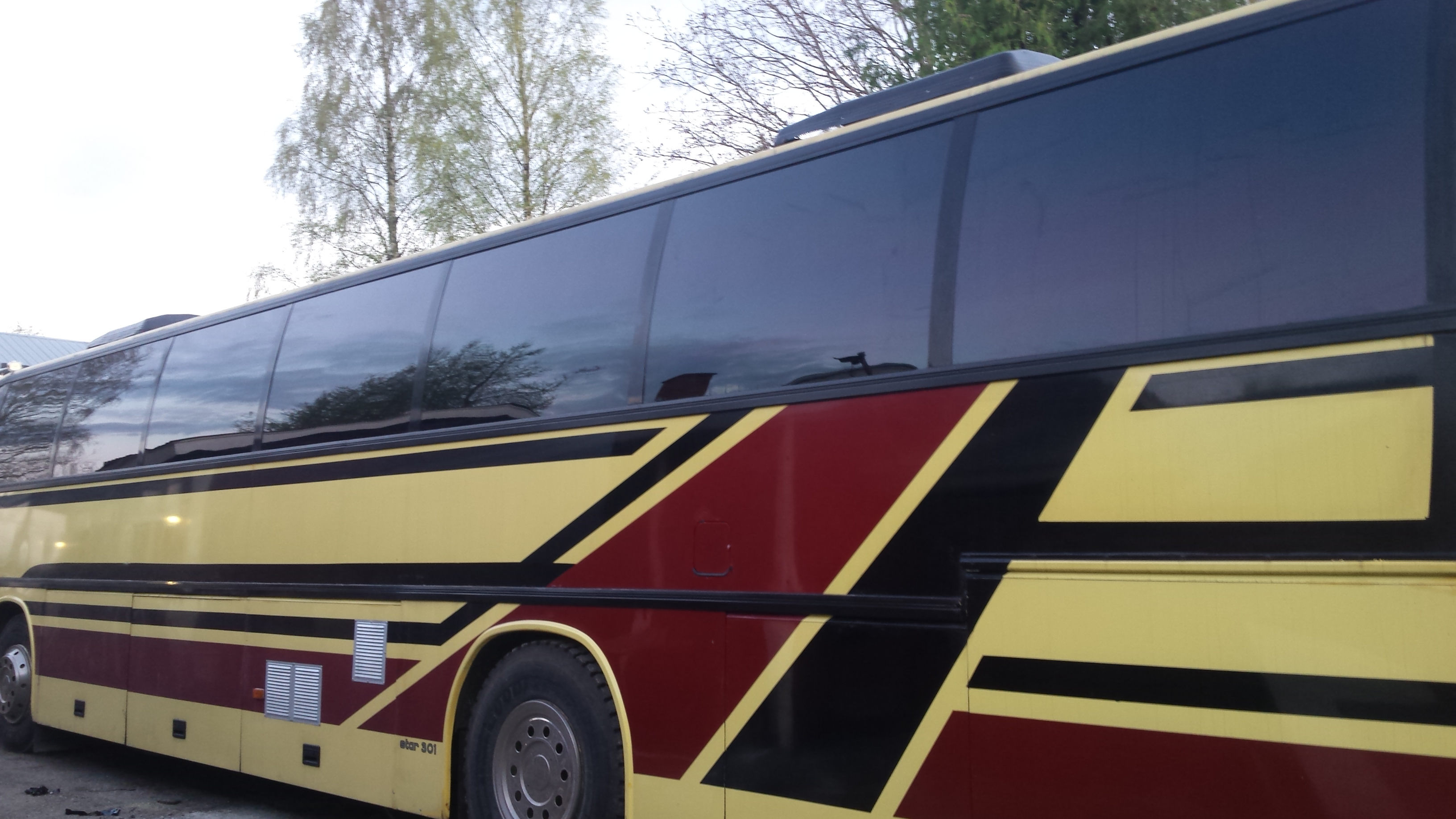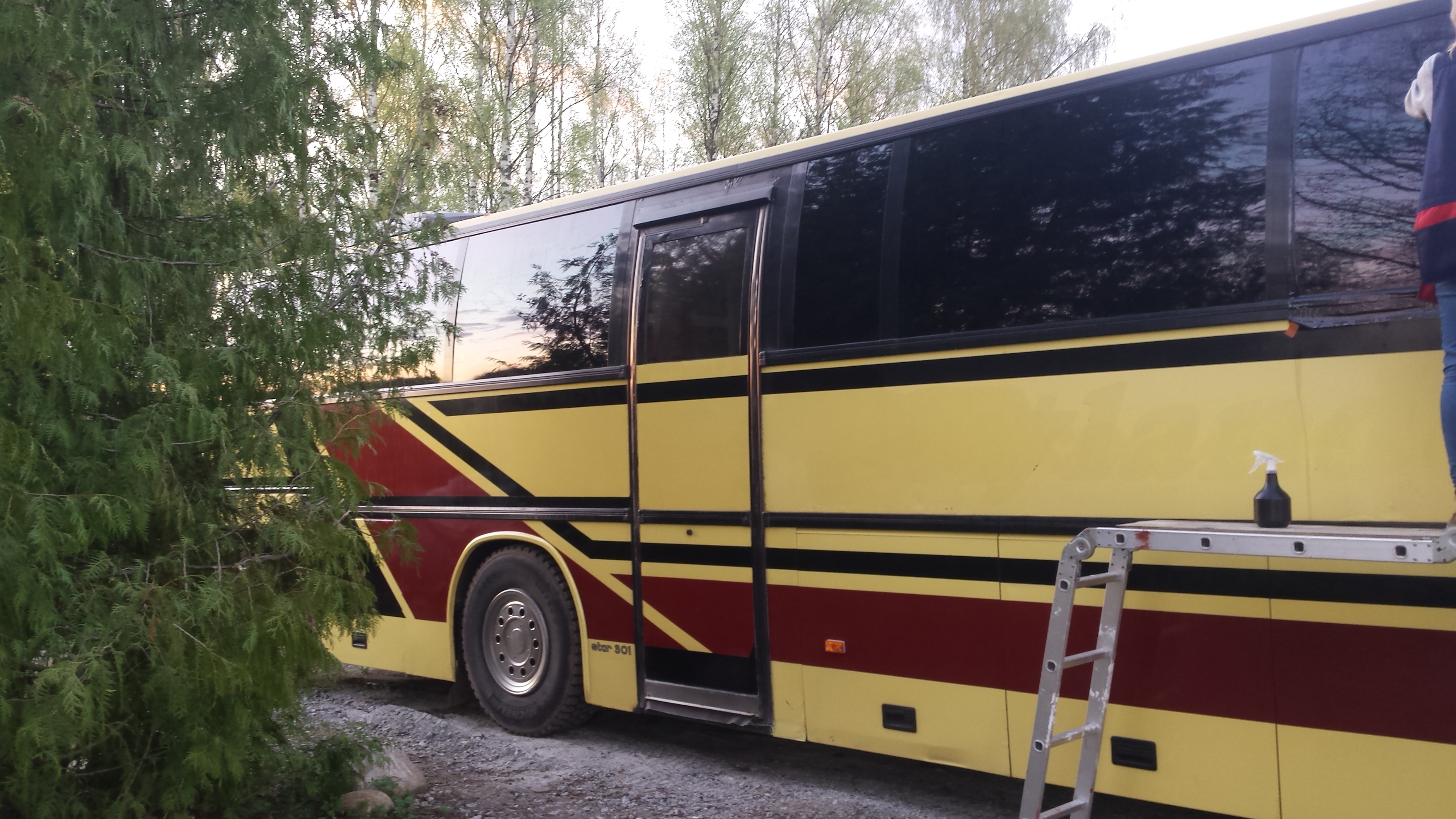 Bussin kyljet "kiiltää ku mustalaisen mu***t kuutamossa... Hieno on