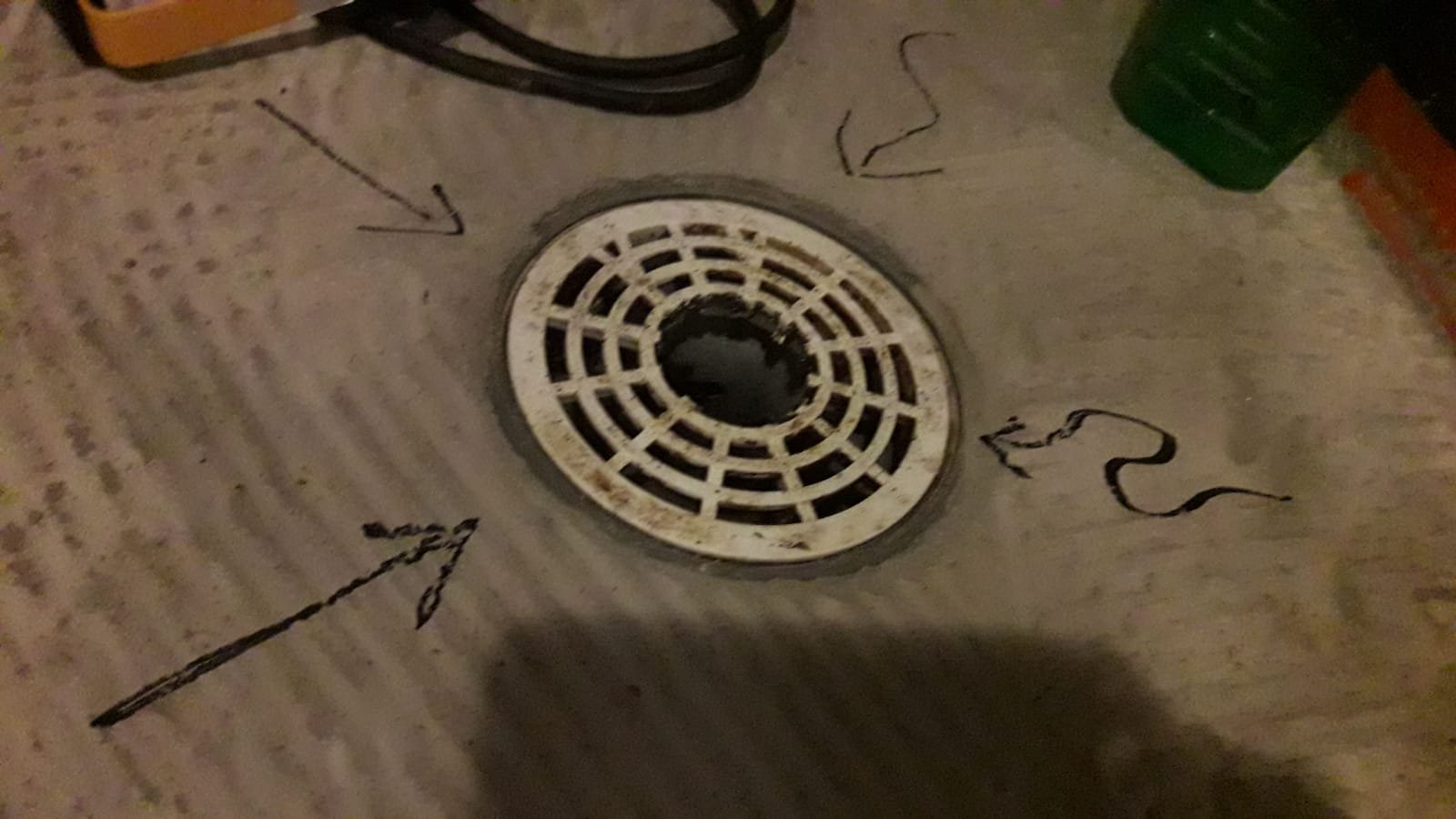 Jos siinä on kunnon suppilokaato - niin on siinä vääntämistä. Jos ei vesi löydä kaivoon niin piirrä sille nuolet opasteeksi. Näin tein kotona.