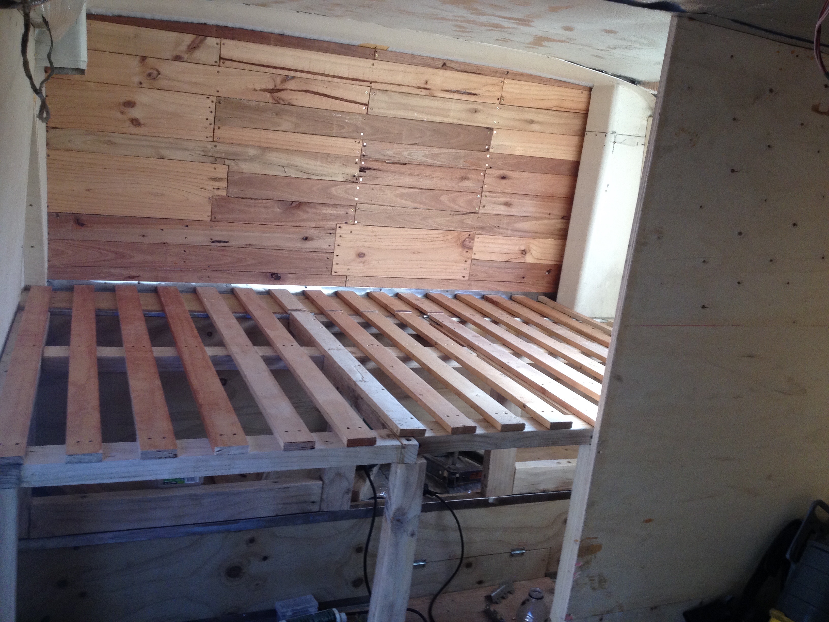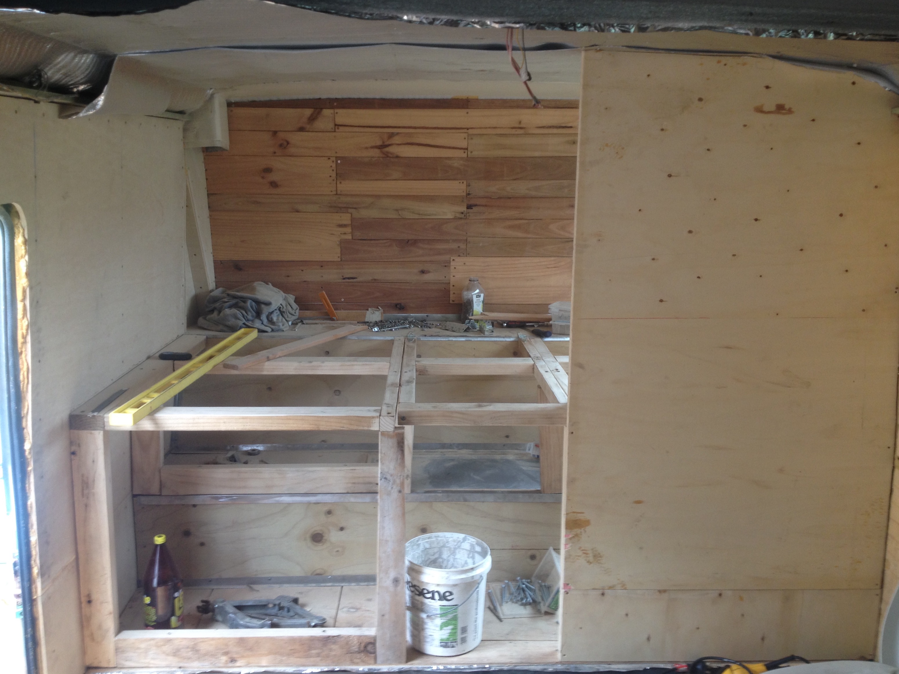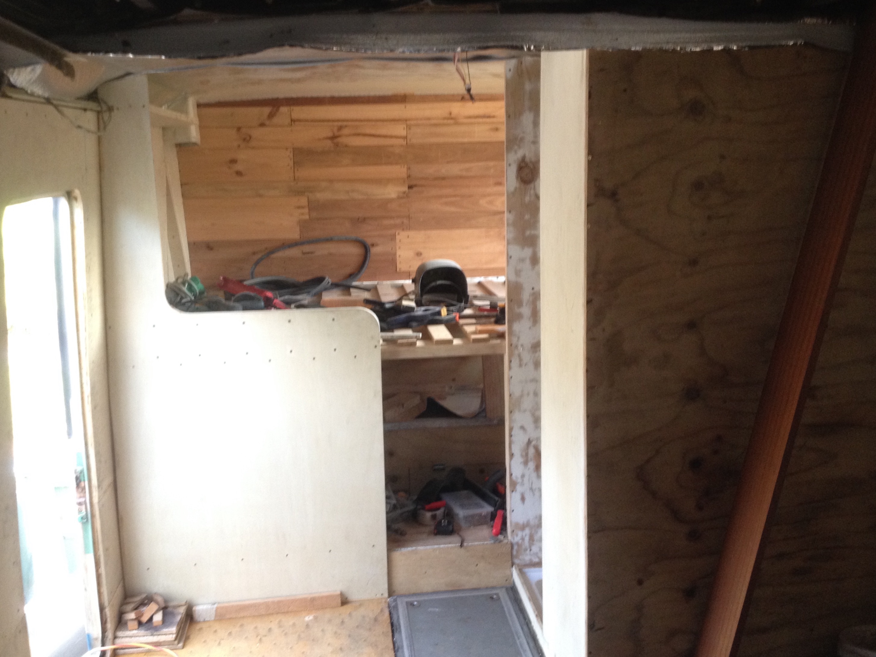Yksinkertaista vaneriahan nuo kaupallistenkin matkailuajoneuvojen kaikki väliseinät on.. Vai onko peräti jotain melamiinilevyä? EIkä niiden vahvuus ole kuin jotain 12mm.