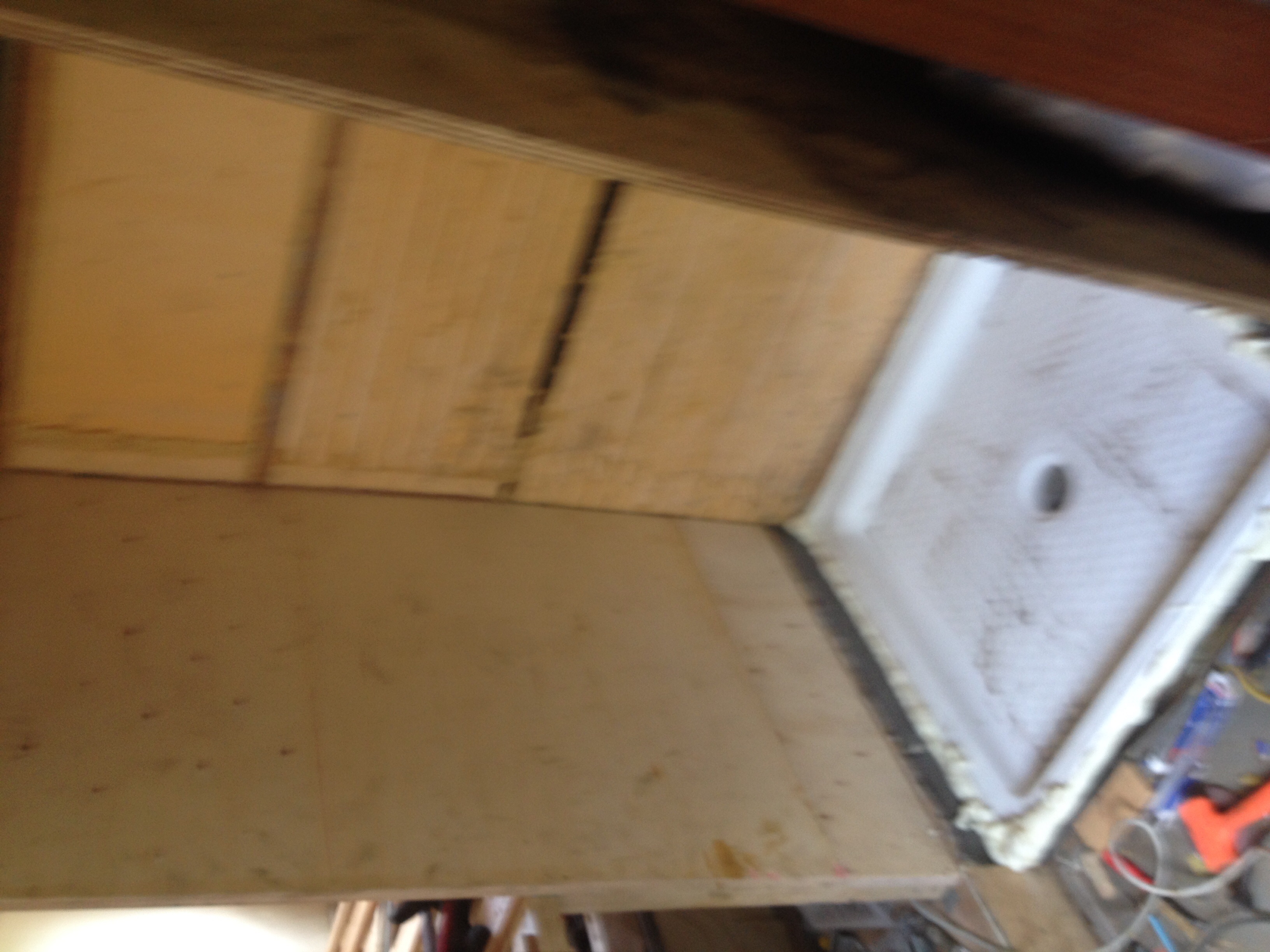 Eilen raksin vessan kohalta lattian pois ja kolvailin lopuista Toyotan takapenkin raudoista uuden tukikehikon näin syntyneeseen koloseen (ei kuvia!). Sovittelin lattialevyn takas paikalleen ja ruuvasin kii, istutin vessanlattian (905x905 suihkuallas) kokeeks paikoilleen. Kaveri katto sitä ja sano "laitoitko iha itte sen tukipalkin tohon viemärinaukon kohalle?" (enklanniks kylläki). Tänään sit nostin sen altaan siitä pois, ruuvasin lattian irti, leikkelin ja hitsailin uudet lisätuet paikoilleen ja leikkasin sen pätkän pois siitä keskeltä (EI KUVIA!!!). Levy takas ja päivä oliki oikeestaan siinä.