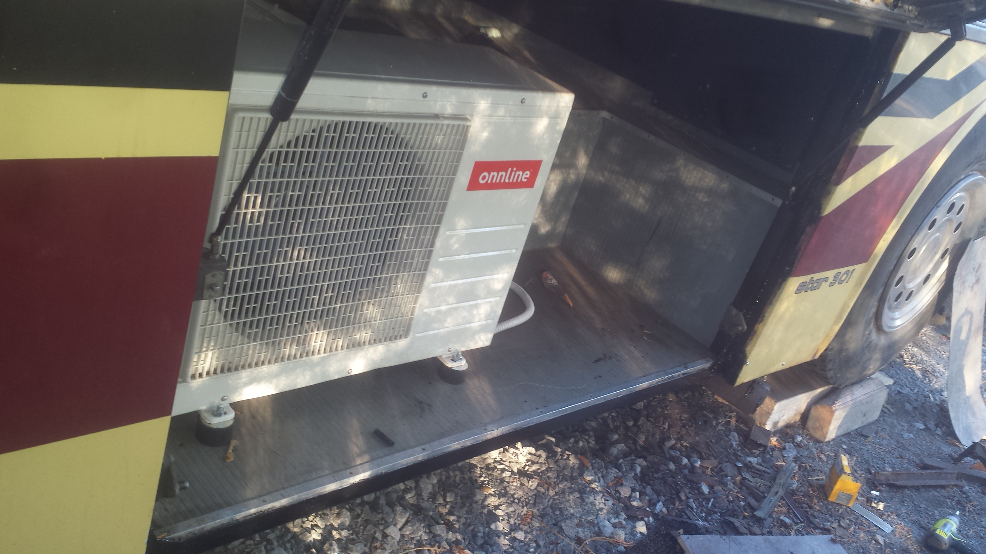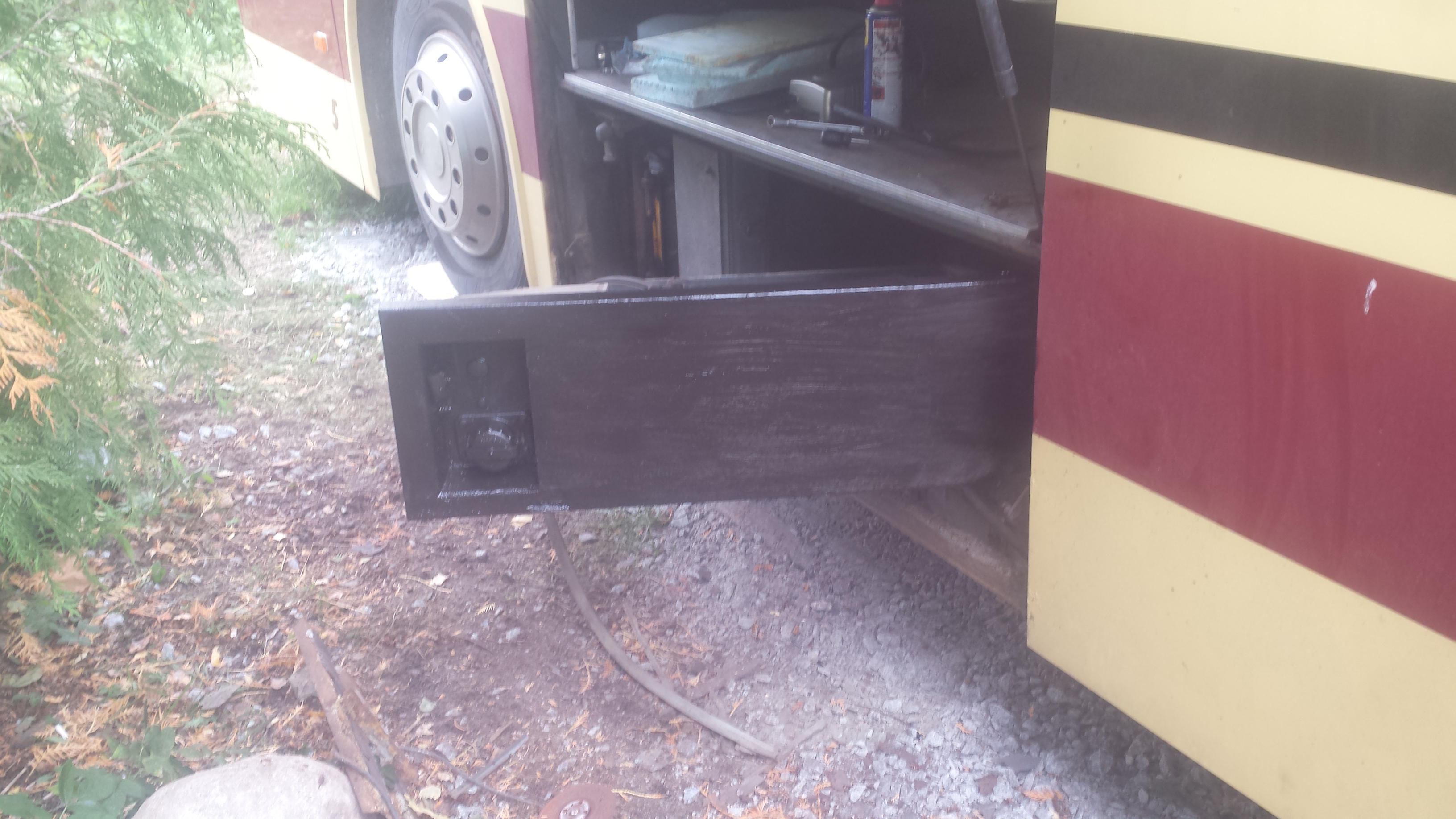 Nyt en jaksa ottaa kotelosta kuvaa sisäpuolelta ku himpan väsy. Aamu 10 pakertanut ton härveliin kanssa. Akkukotelo on sisältä semmonen harmaa jossa muovi pohjalla missä on kouruja. Jokunen metri livahti uutta 40x 40 kankee autoon. Ja maalia ja massaa. ..yms.