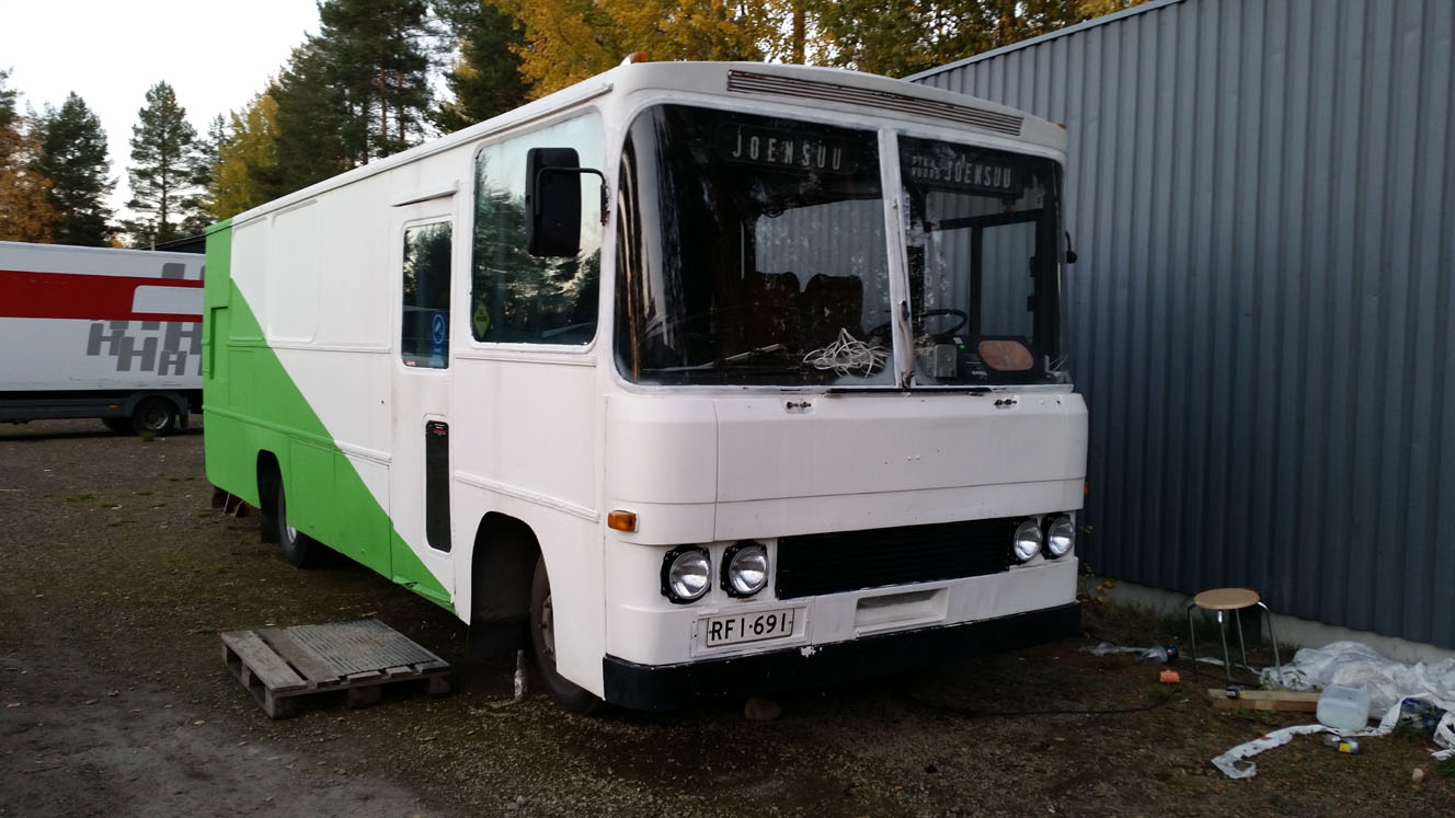 Ajatuksissa oli, että korvaan myöhemmin nuo filmivanerit pellillä tai lasikuidulla, ja asennan siihen sitten pienemmät luukut, esim. jotain Dometicin asuntovaunumallia. Tuohan on papereissa matkailuauto, niin ei kai tarvi lain mukaan olla noita isoja kattoluukkuja/varauloskäytäviä? No, noita ehtii miettimään sitten keväämmällä
