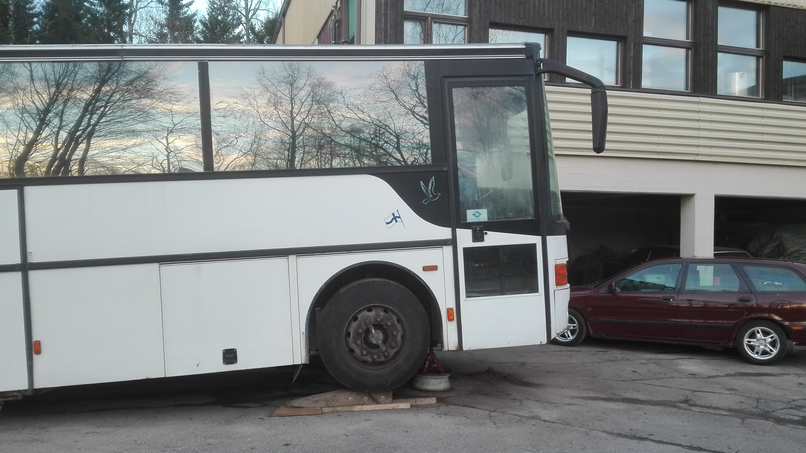 no kun tehtaalla laittoivat korin väärään paikkaan renkaiden päälle :) . Takaylitys on vastaavasti....