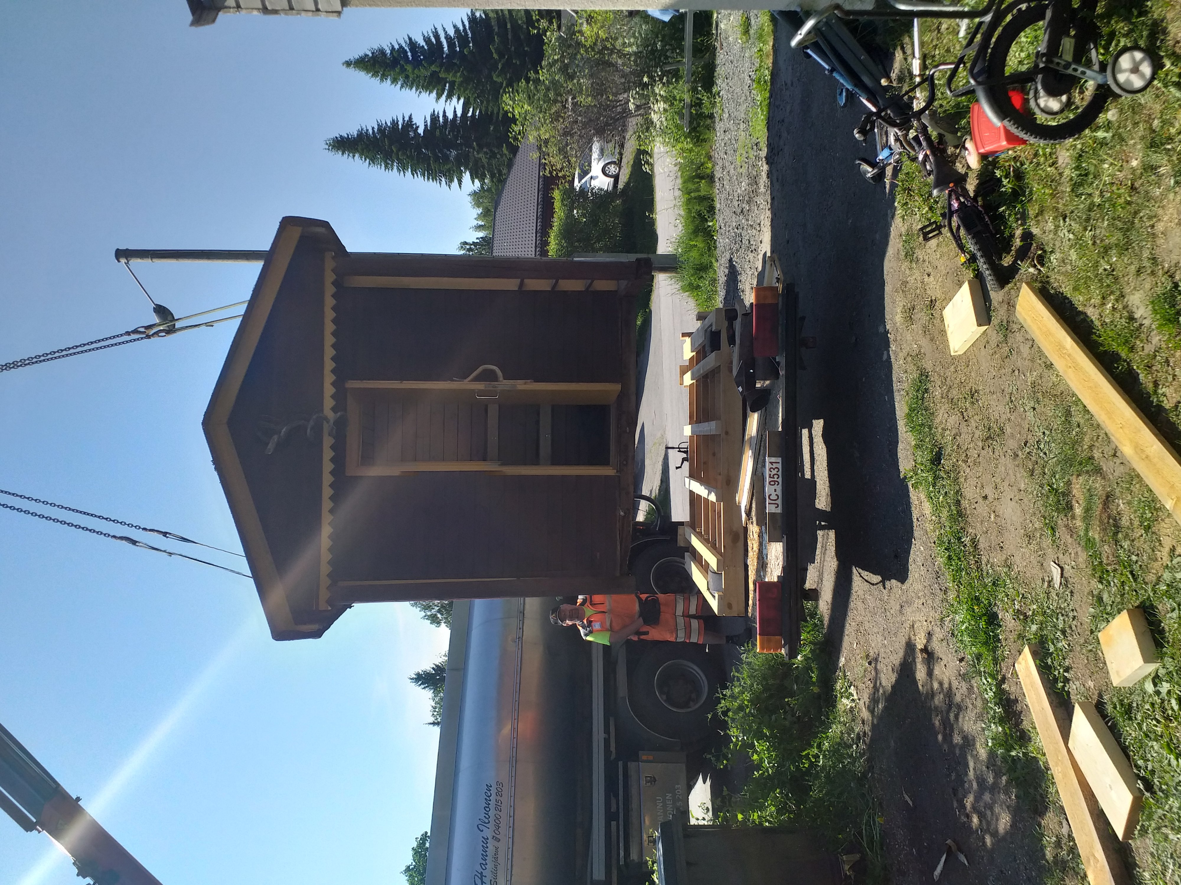 Nyt on leikkimökki pihassa.Tein viikonloppuna perustukset valmiiksi takapihalle, eipä jaksanutkaan nostaa sinne, kuski epäili että painoa on lähemmäs 1500kg