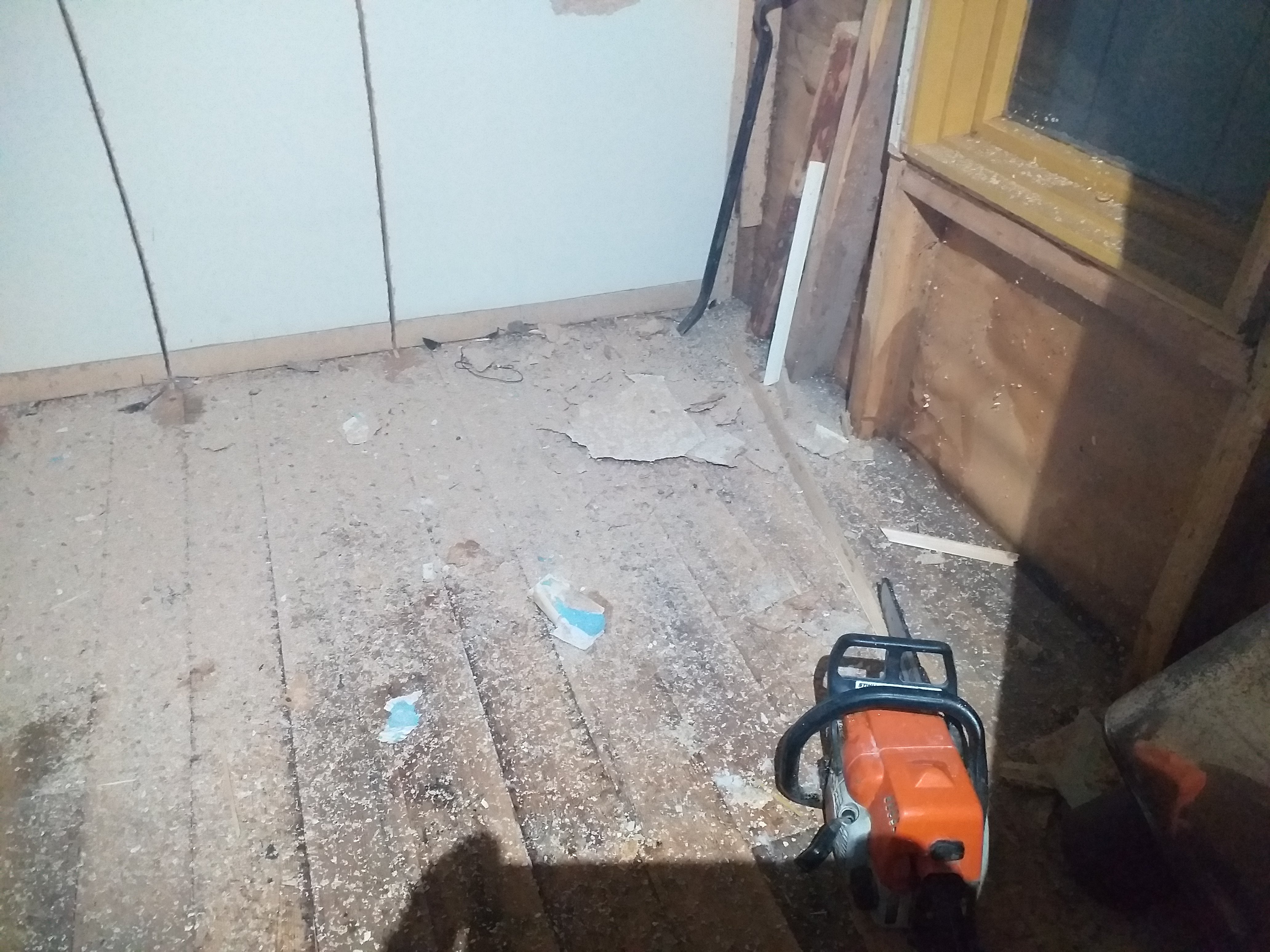 Se oli ydinpomminkestävä! Sit tuli kosteus, seisonta ja naapurin 80-vuotias kaivurikuski; lattia jäi jälelle.