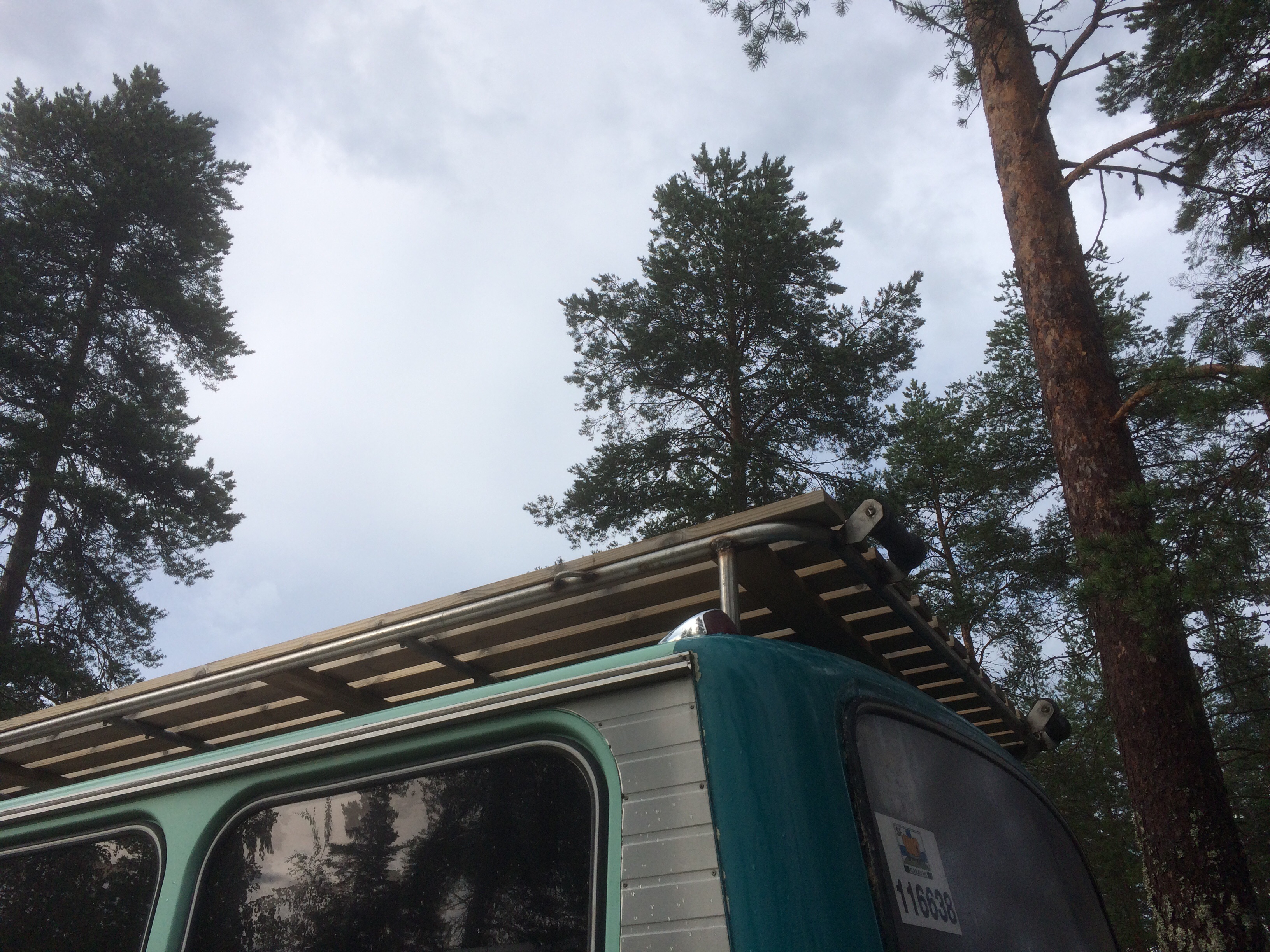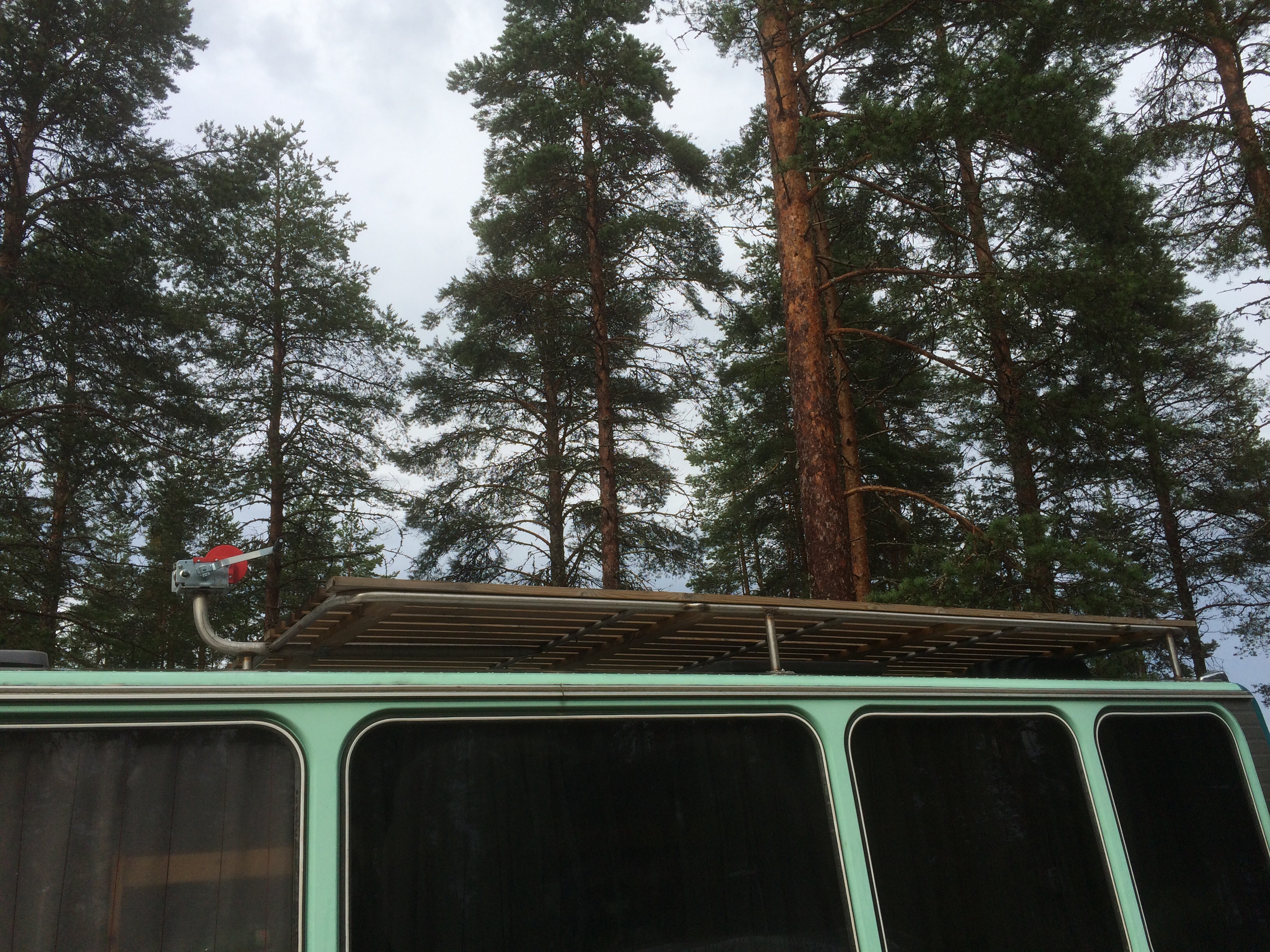 Katsotaan mitä tulee. Tuossa olisi pussillenen kuormansidontapisteitä, pultteja, muttereita...Ainoastaan sää on hieman kehno katon poraamiseen.